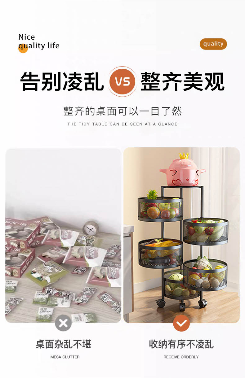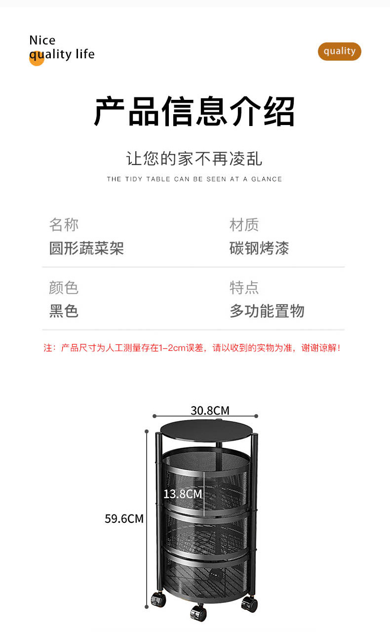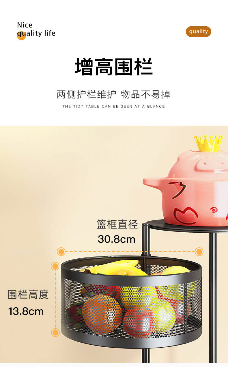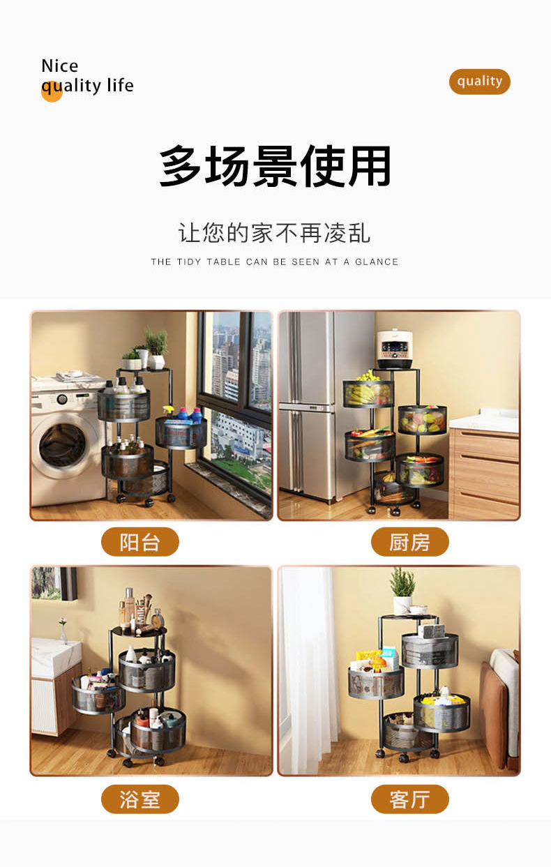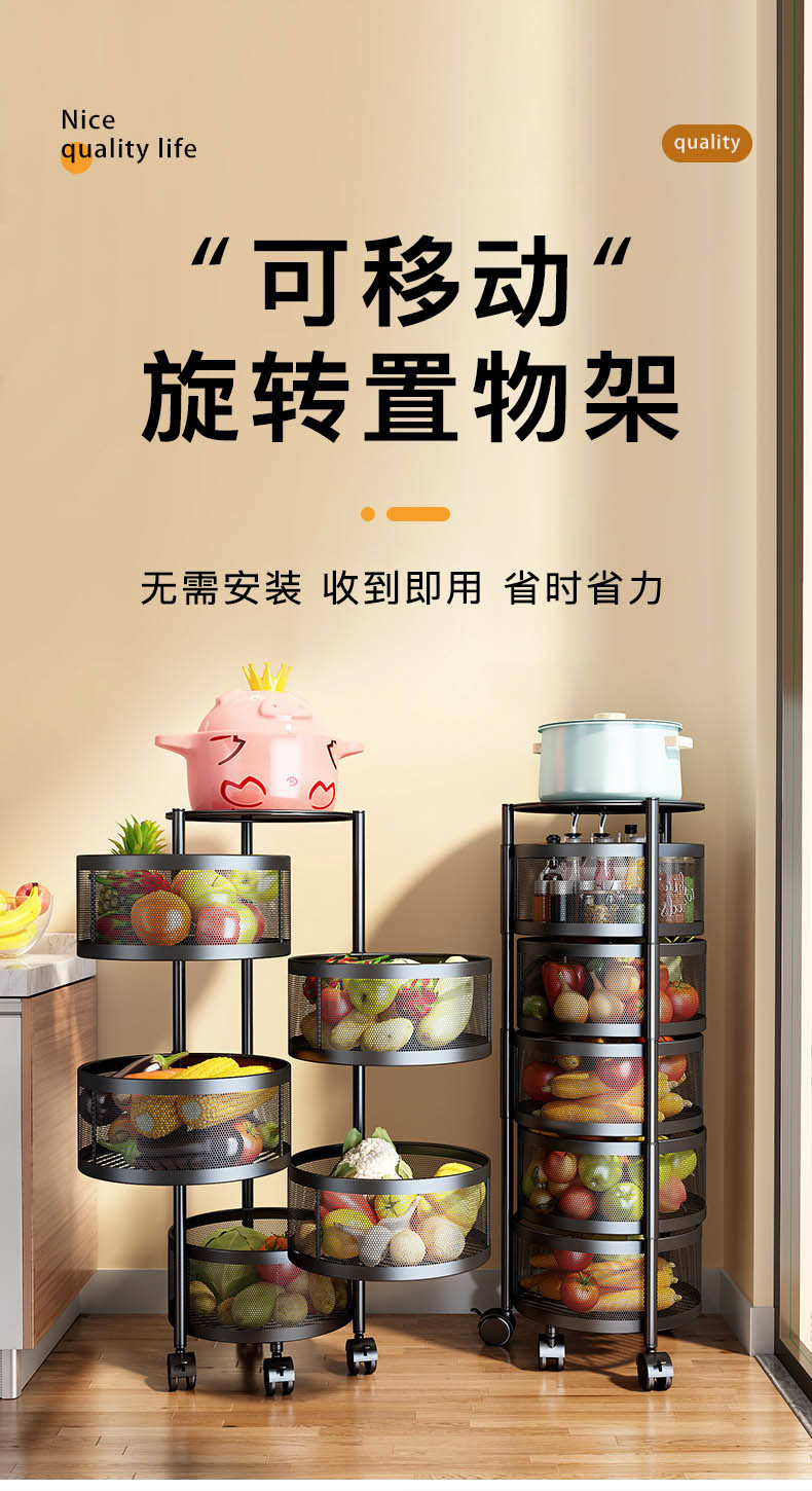 360 도 회전 야채 랙 주방 바닥 다층 가정용 원통형 과일 및 야채 바구니 보관 랙