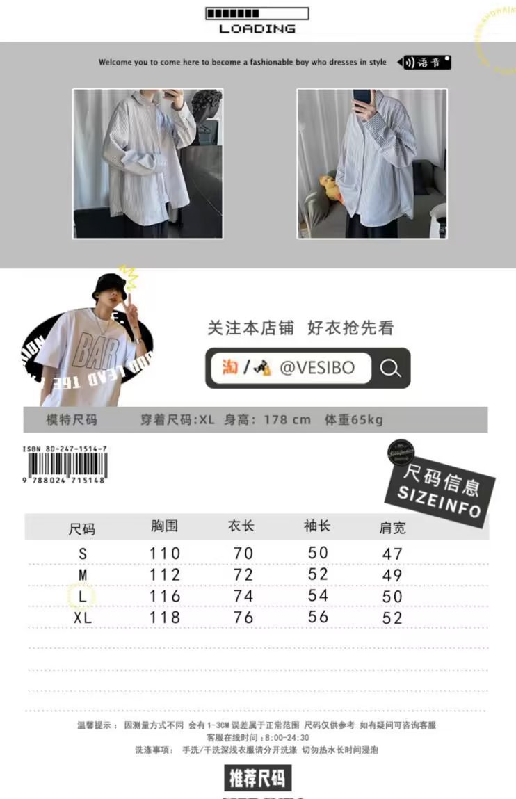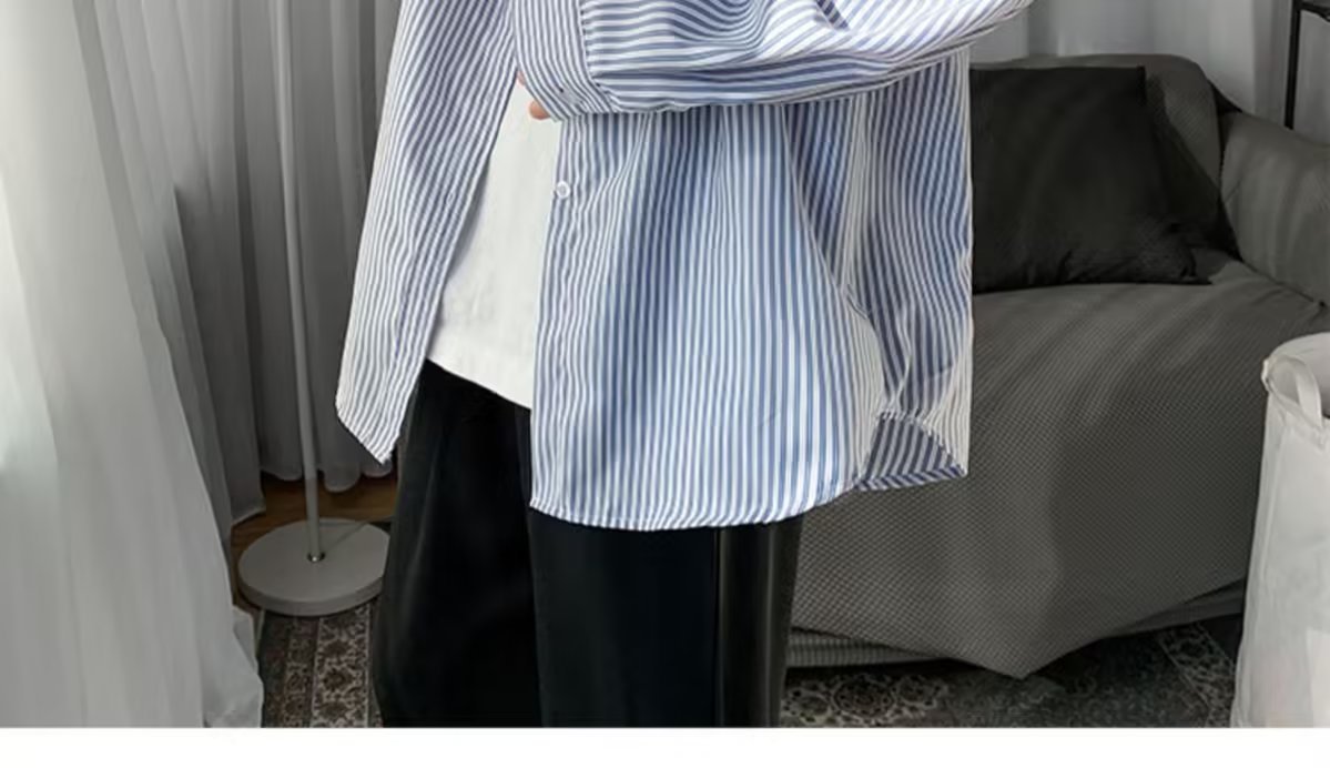 새로운 도착 올매치 긴 소매 셔츠 봄과 여름 잘 생긴 남자 재킷 홍콩 스타일 Ins 남성용 유행 루즈 스트라이프 셔츠스토어 가기
