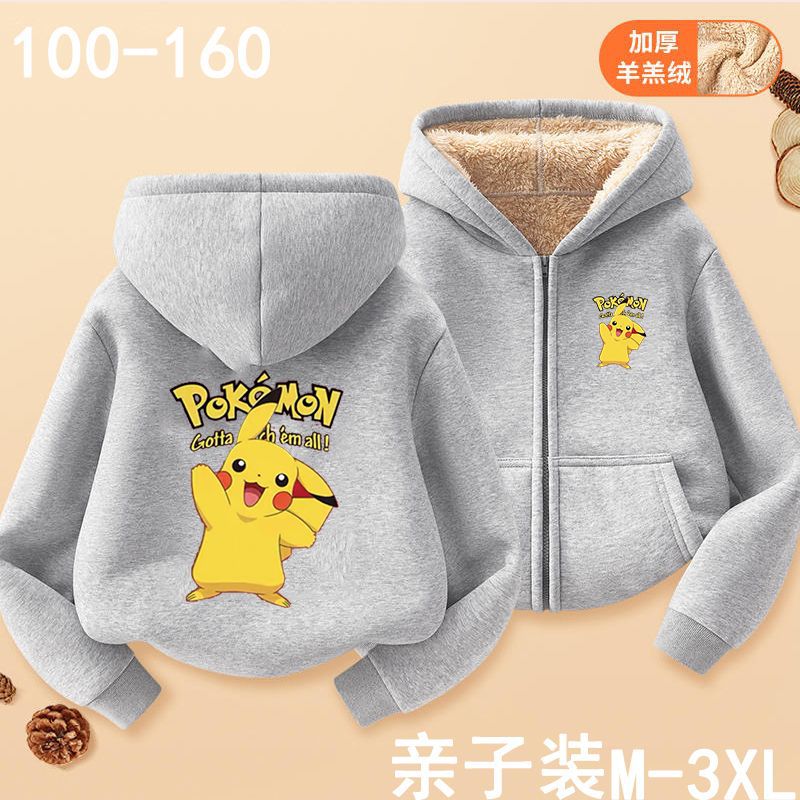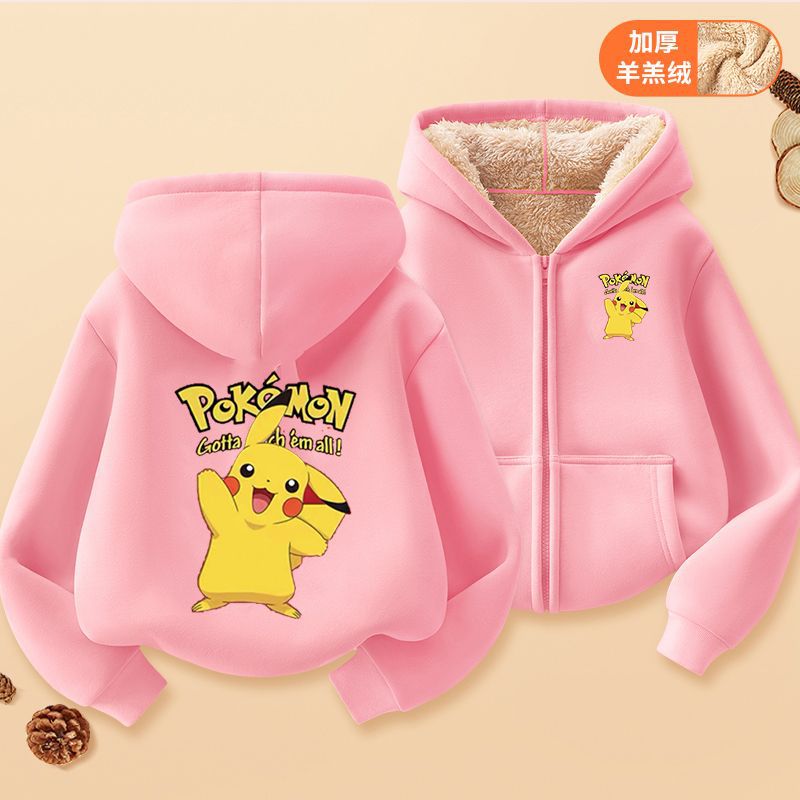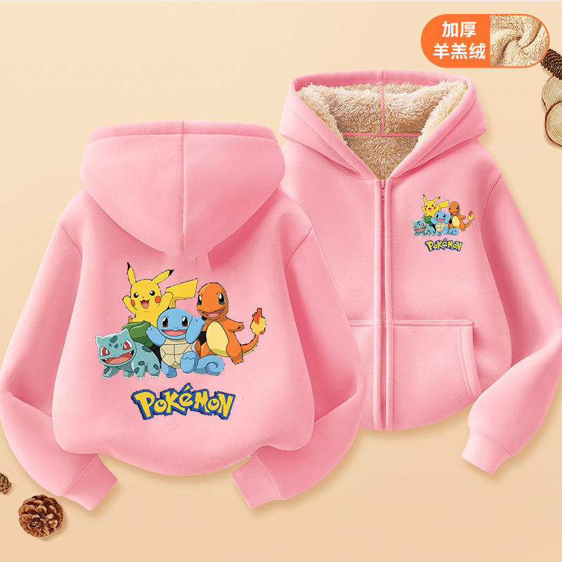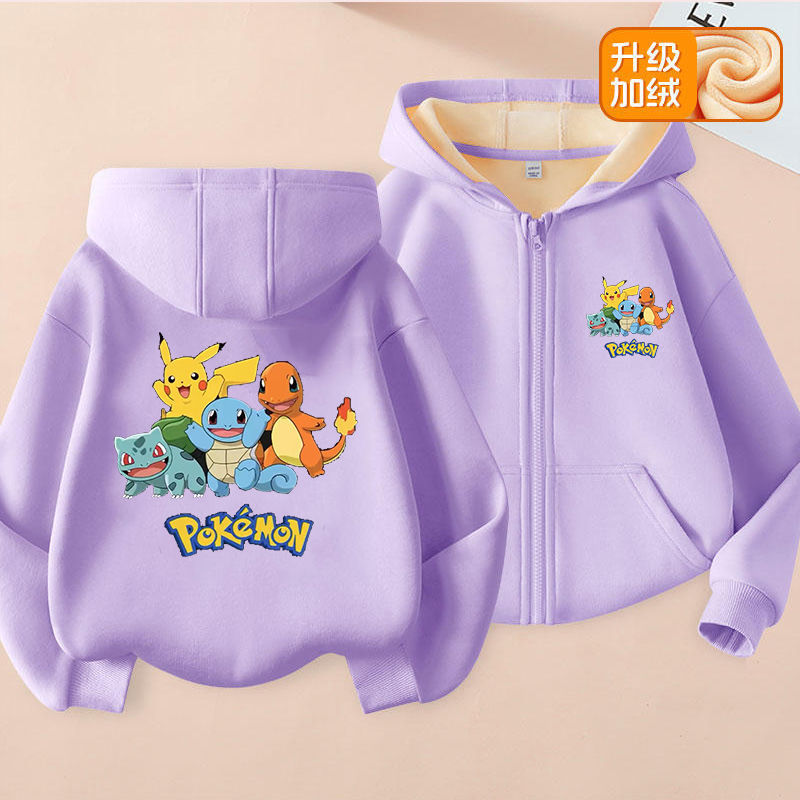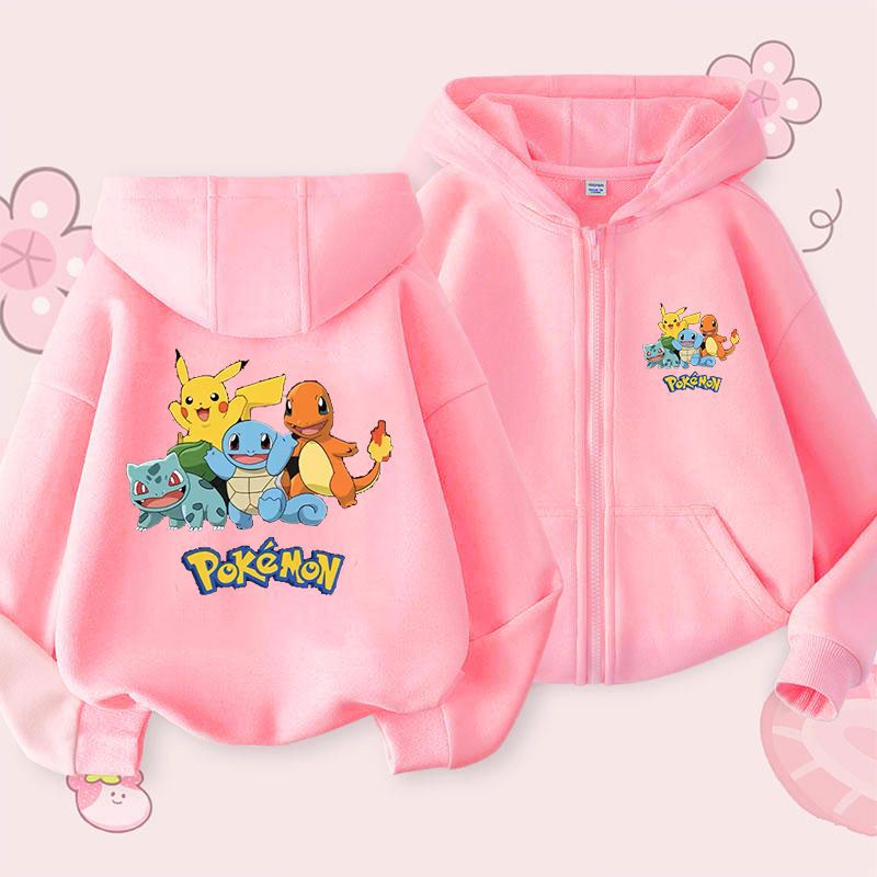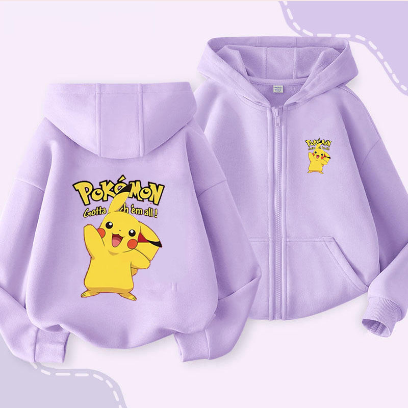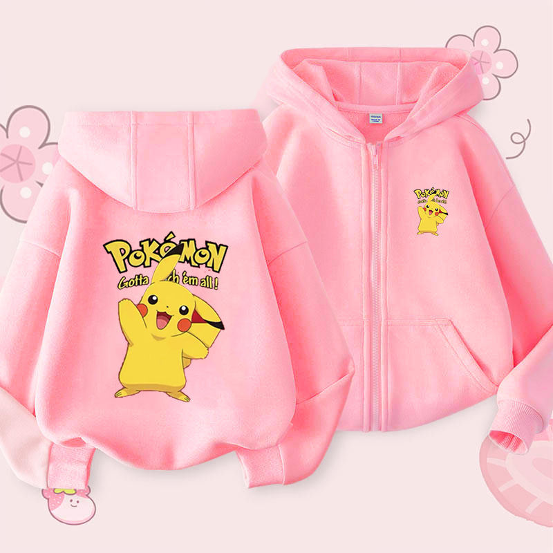 피카추 가을과 겨울 지퍼 후드 자켓 어린이 포켓몬 소녀 카디건 피카추 후드 스웨터 패션