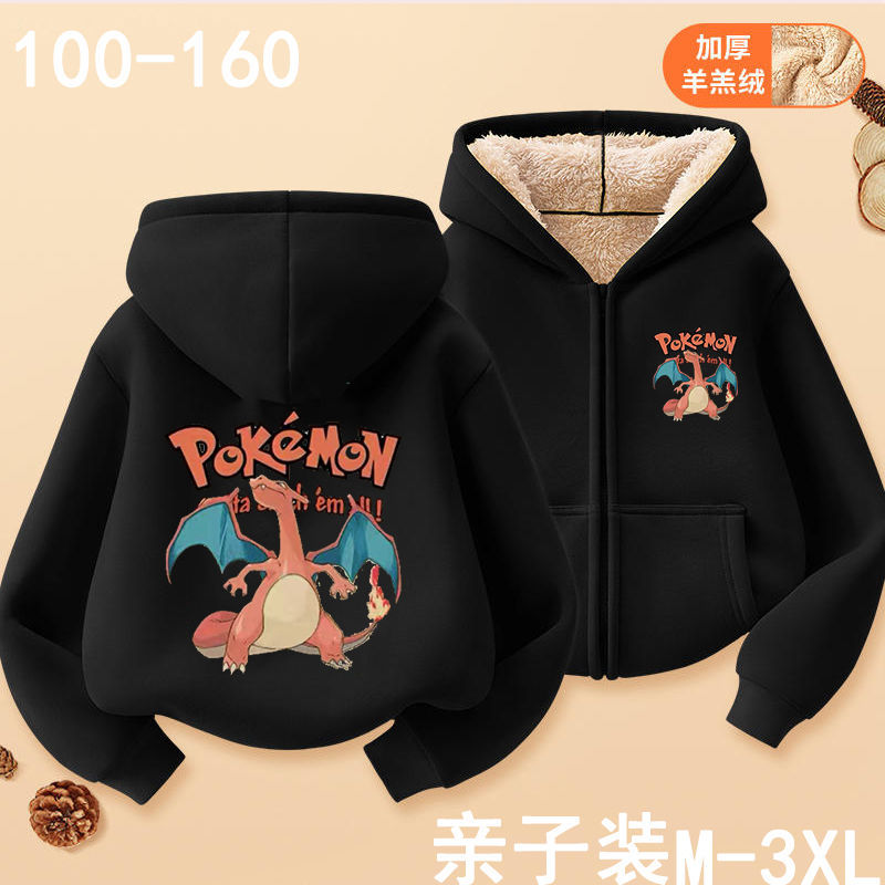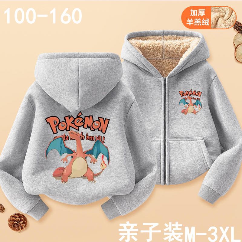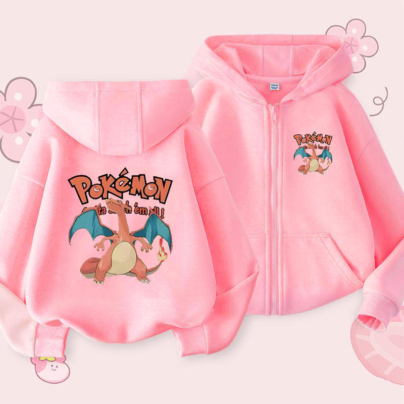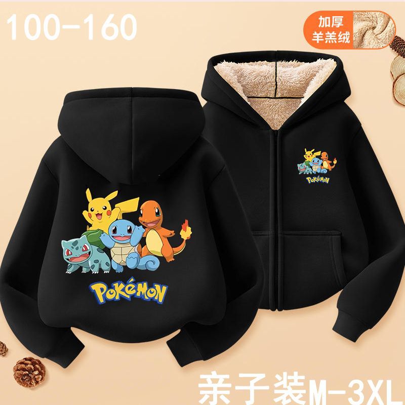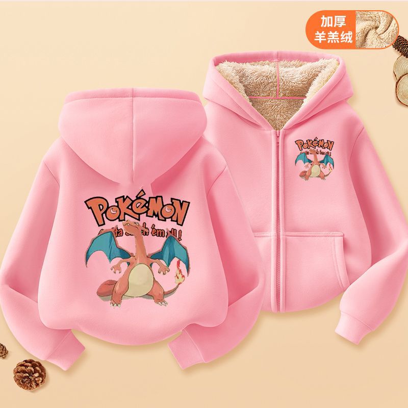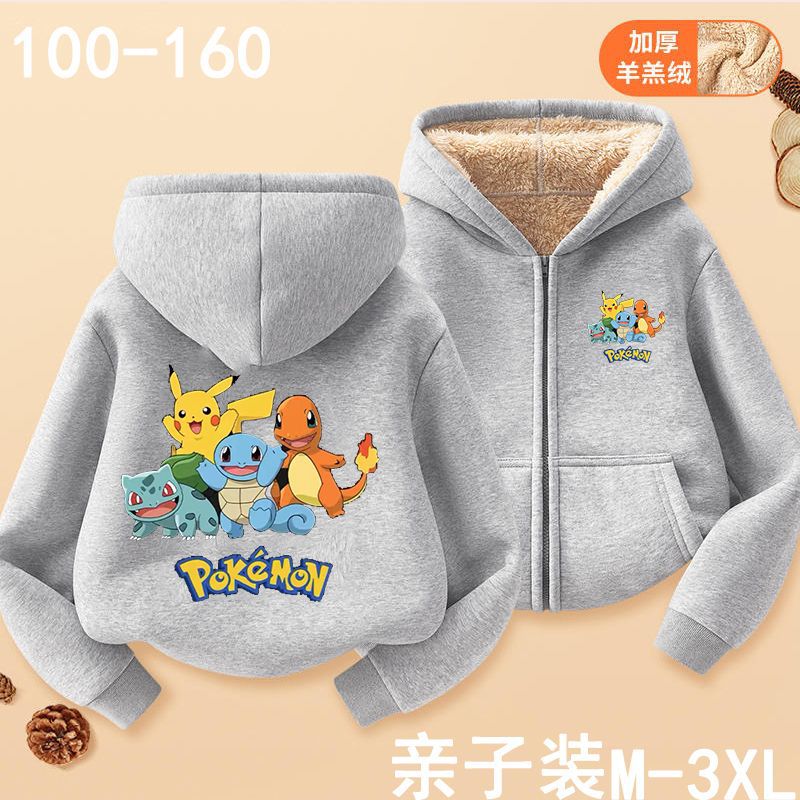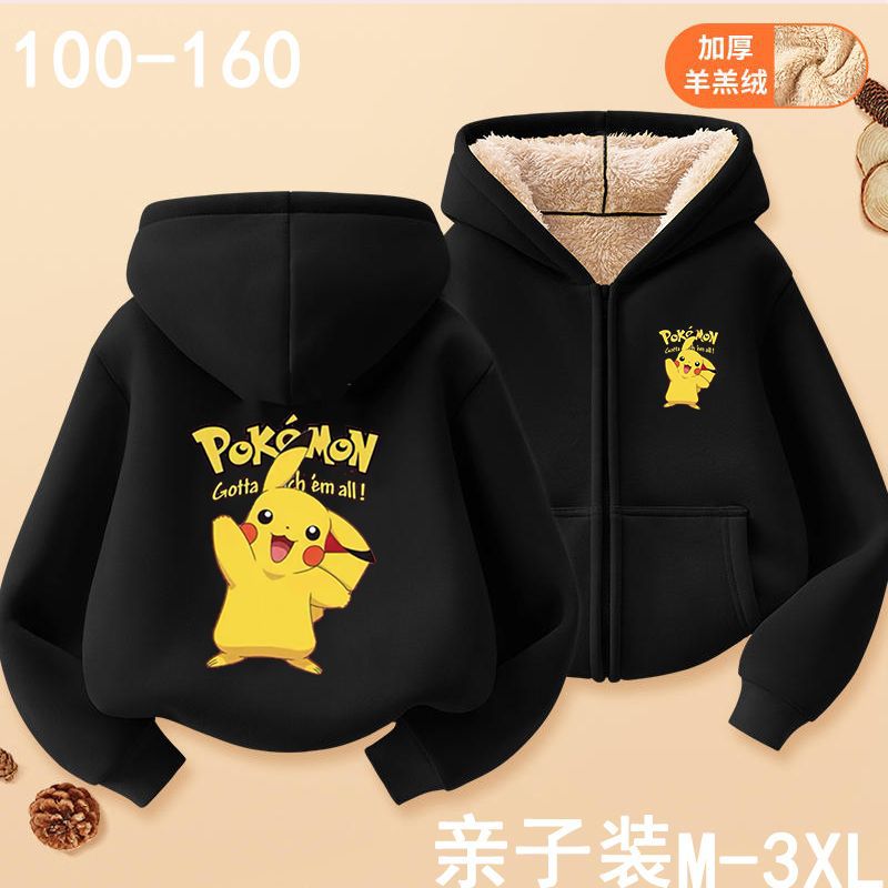 피카추 가을과 겨울 지퍼 후드 자켓 어린이 포켓몬 소녀 카디건 피카추 후드 스웨터 패션