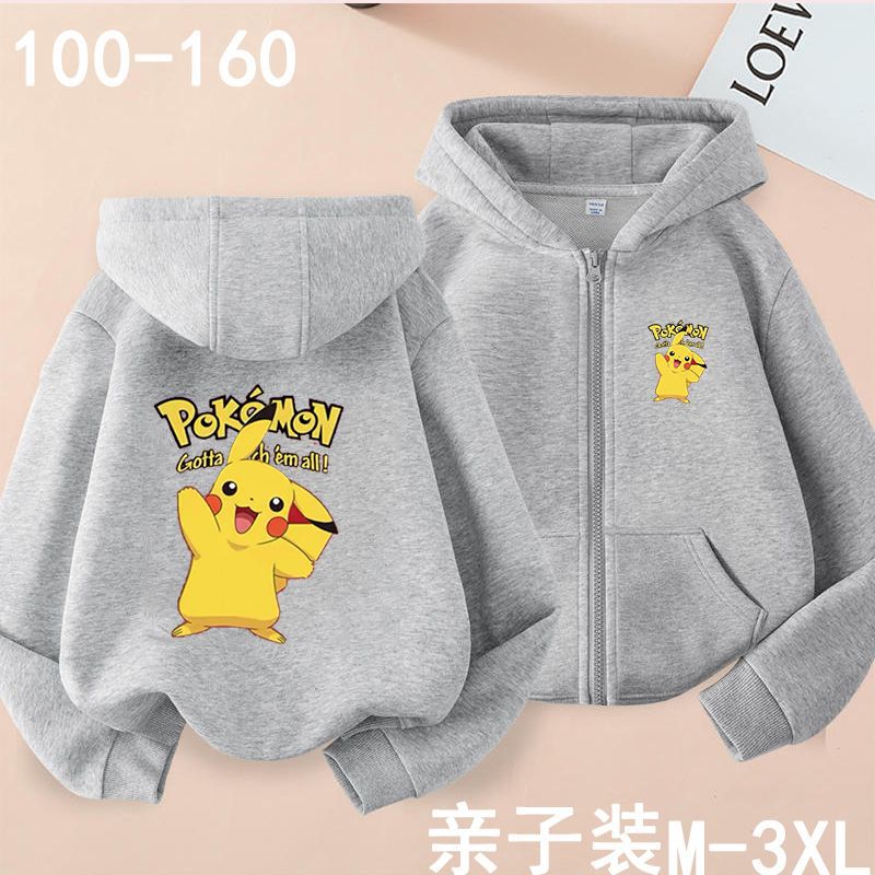• 피카츄 [지퍼 스웨트셔츠] 그레이 [얇은 스타일]