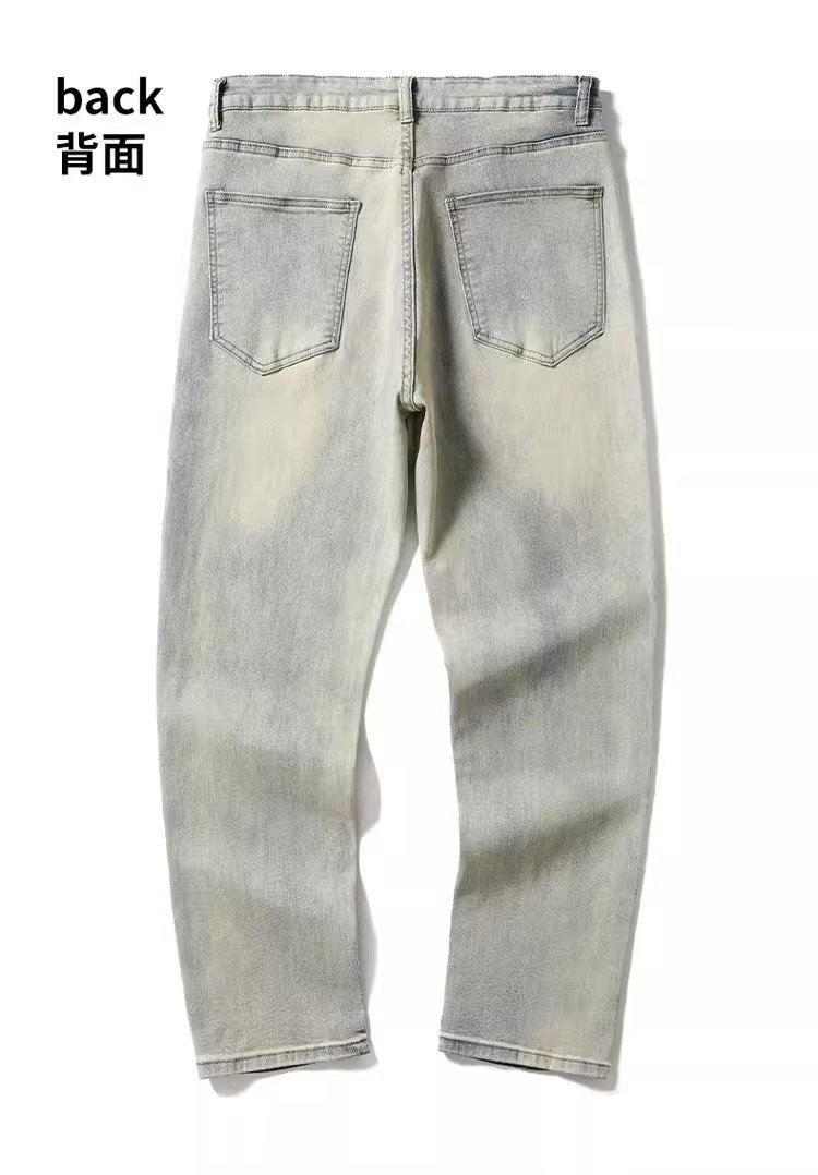 하이 스트리트 빈티지 옐로우 머드 염색 루즈 스트레이트 청바지 남성 Ins 패셔너블 올 매치 캐주얼 와이드 레그 팬츠스토어 가기