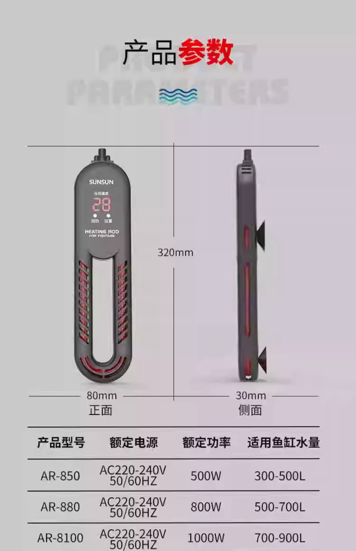 AR-8 적외선 탄소 섬유 가열 막대 수족관 물고기 탱크 신선한 해수 이중 목적 폭발 방지 히터
