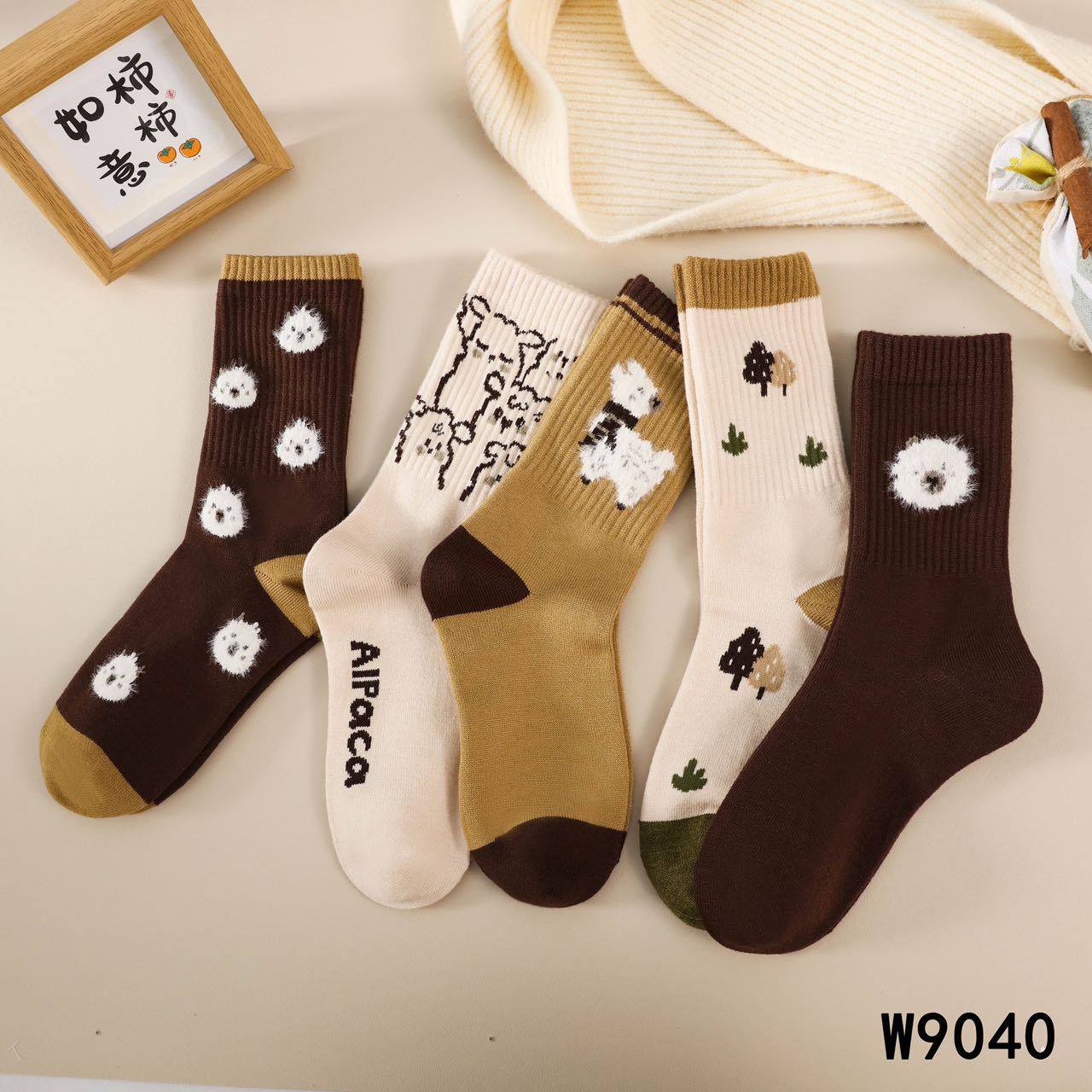 가을과 겨울 양모 긴 튜브 여성용 양말 가을과 겨울 새로운 여성 만화 양모 양말 따뜻한 캐주얼 가열 울 여성용 양말