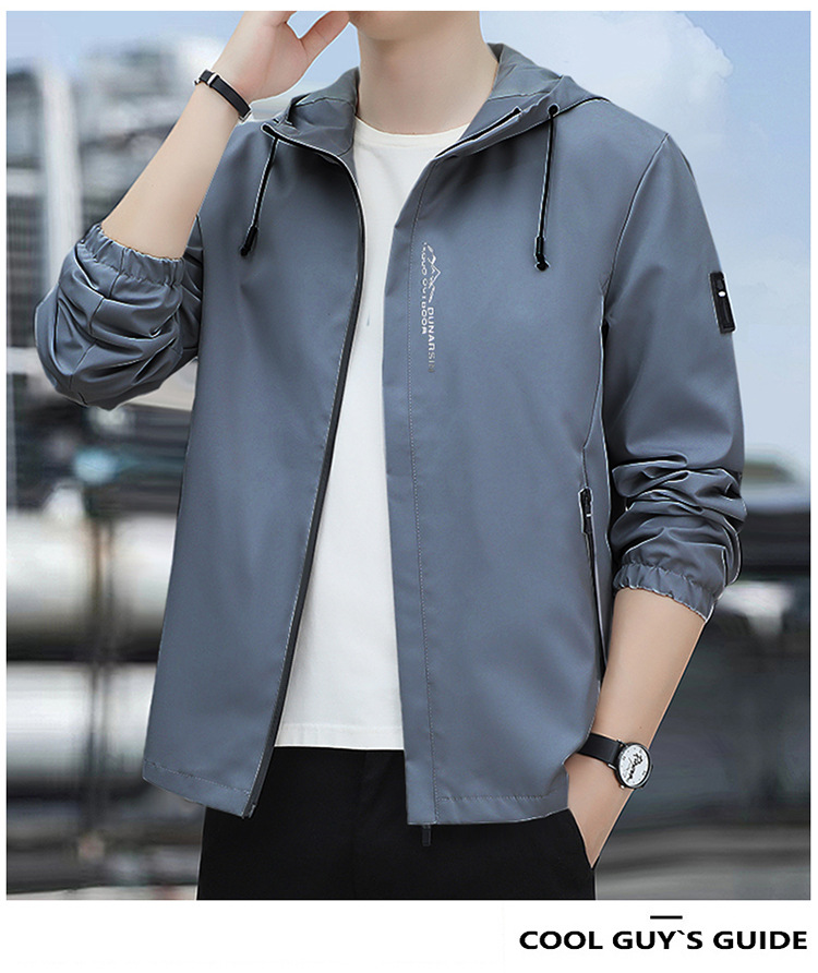 남자 자켓 봄과 가을 2024 새로운 캐주얼 플러스 사이즈 한국 유행 후드 방풍 재킷 남자 탑