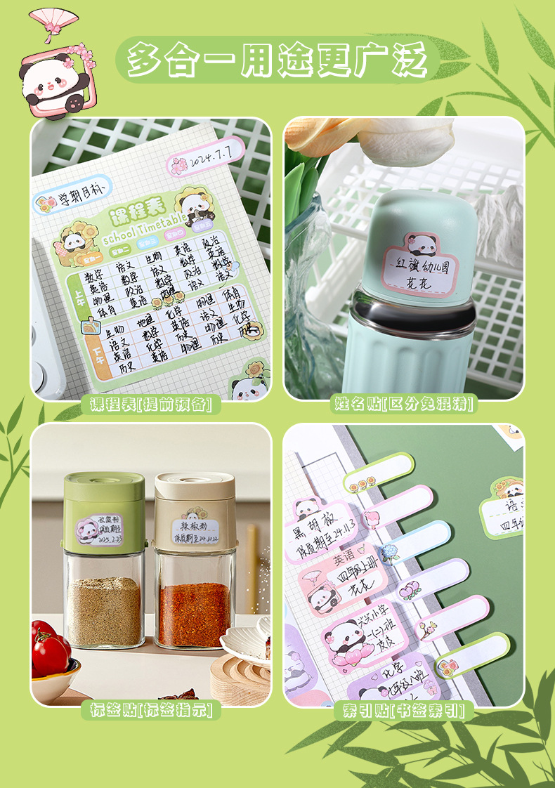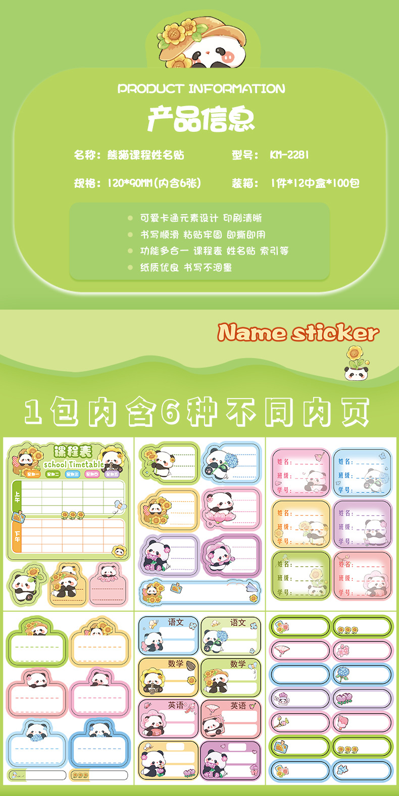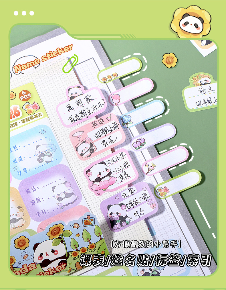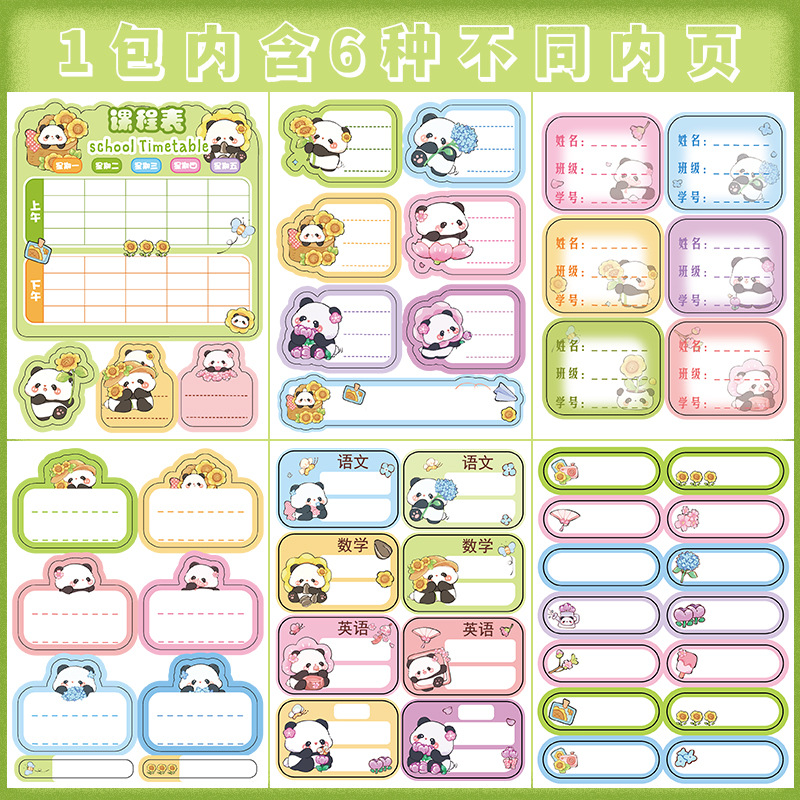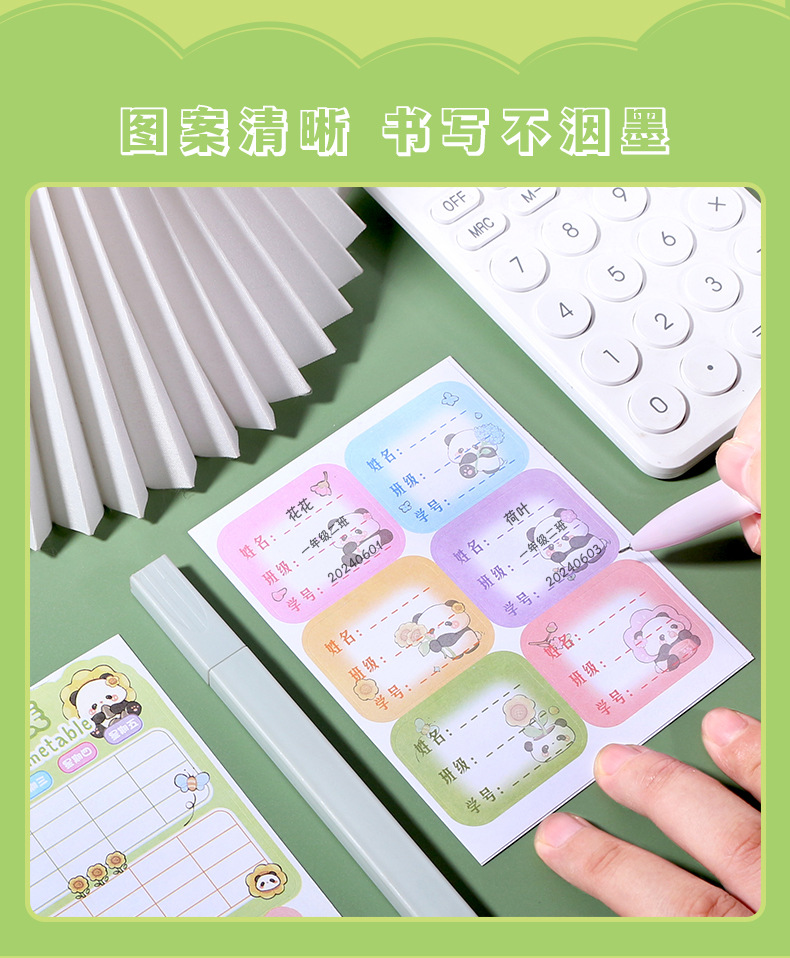 만화 팬더 소재 이름 스티커 초등학생 수업 일정 어린이용 자가 접착 스티커 귀여운 이름표 도매