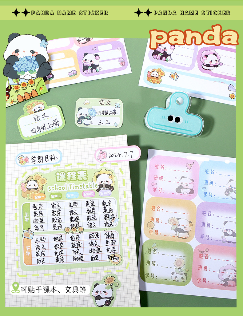 만화 팬더 소재 이름 스티커 초등학생 수업 일정 어린이용 자가 접착 스티커 귀여운 이름표 도매스토어 가기