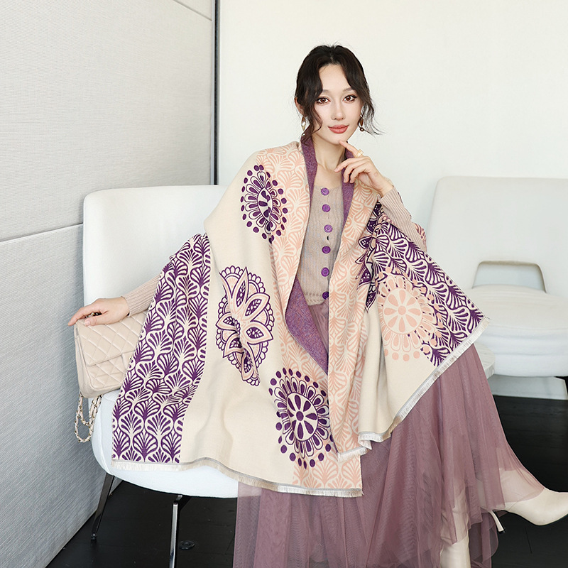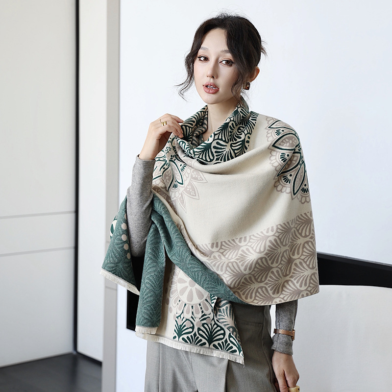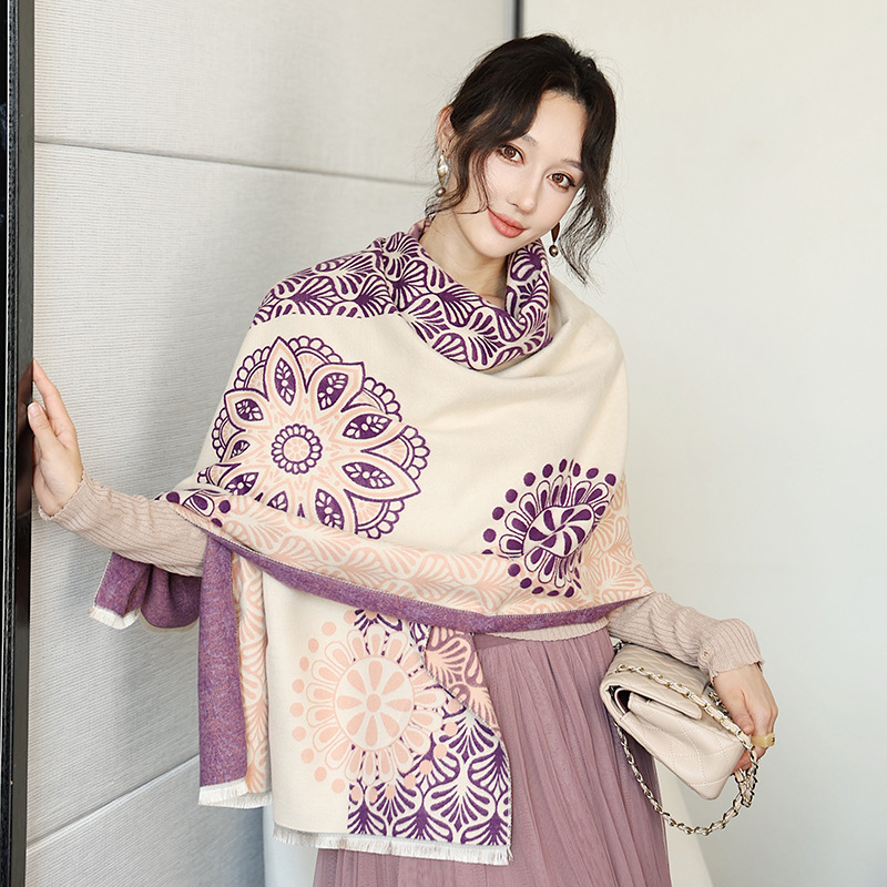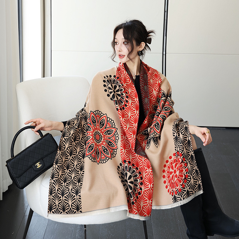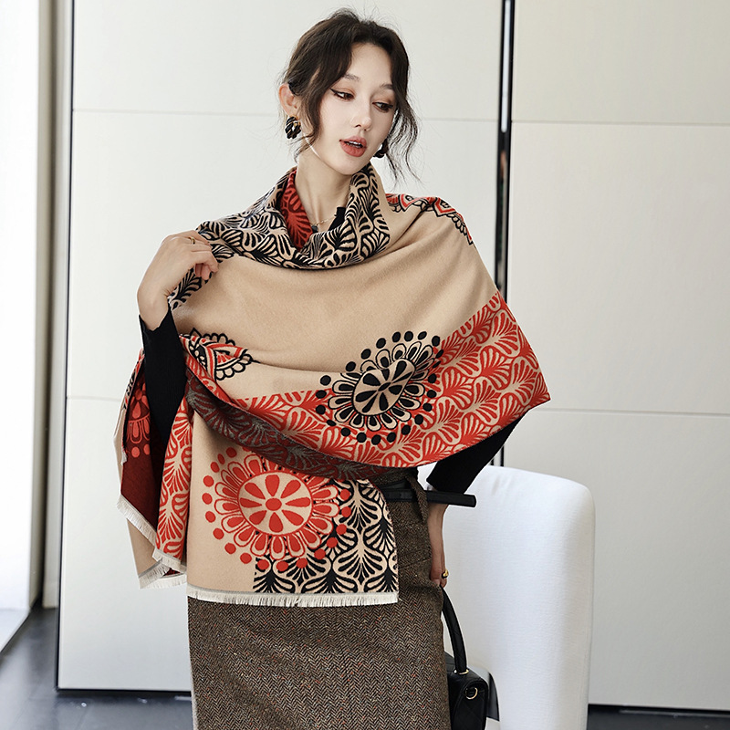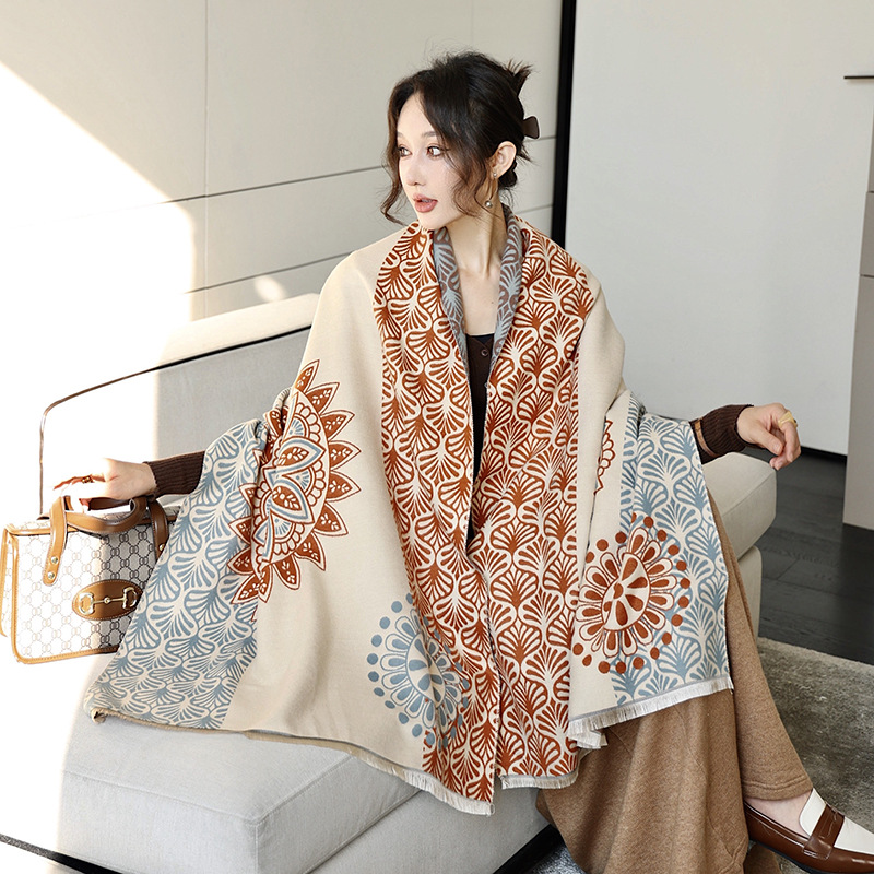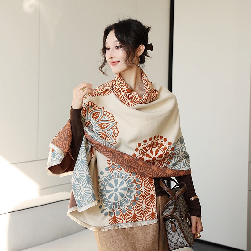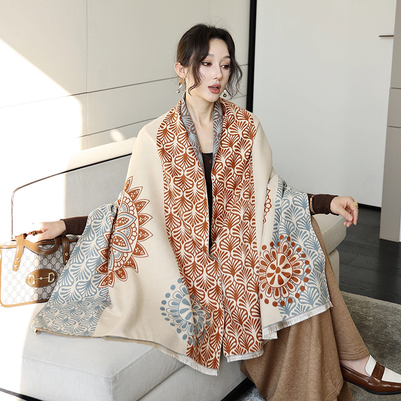 스카프 여성의 가을과 겨울 민족 양면 자카드 목도리 따뜻한 두꺼운 인쇄 외부 사진 스카프 올매치 새로운 스타일