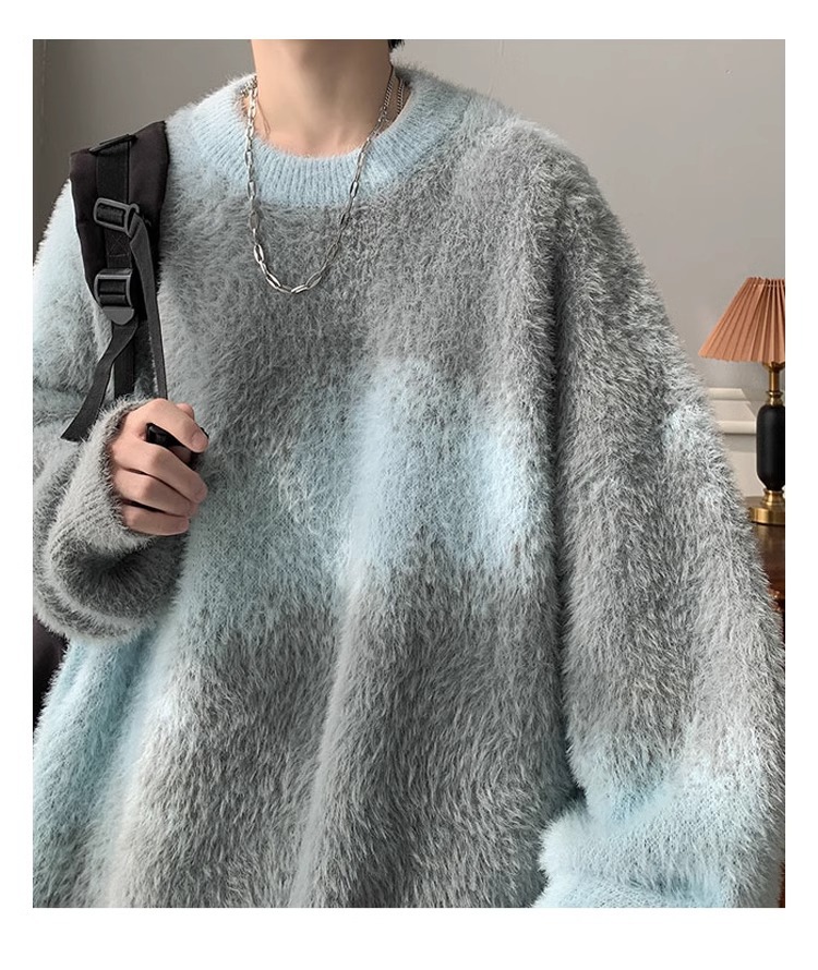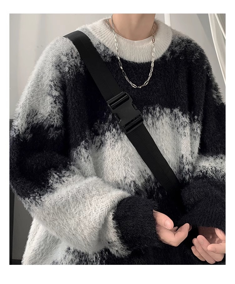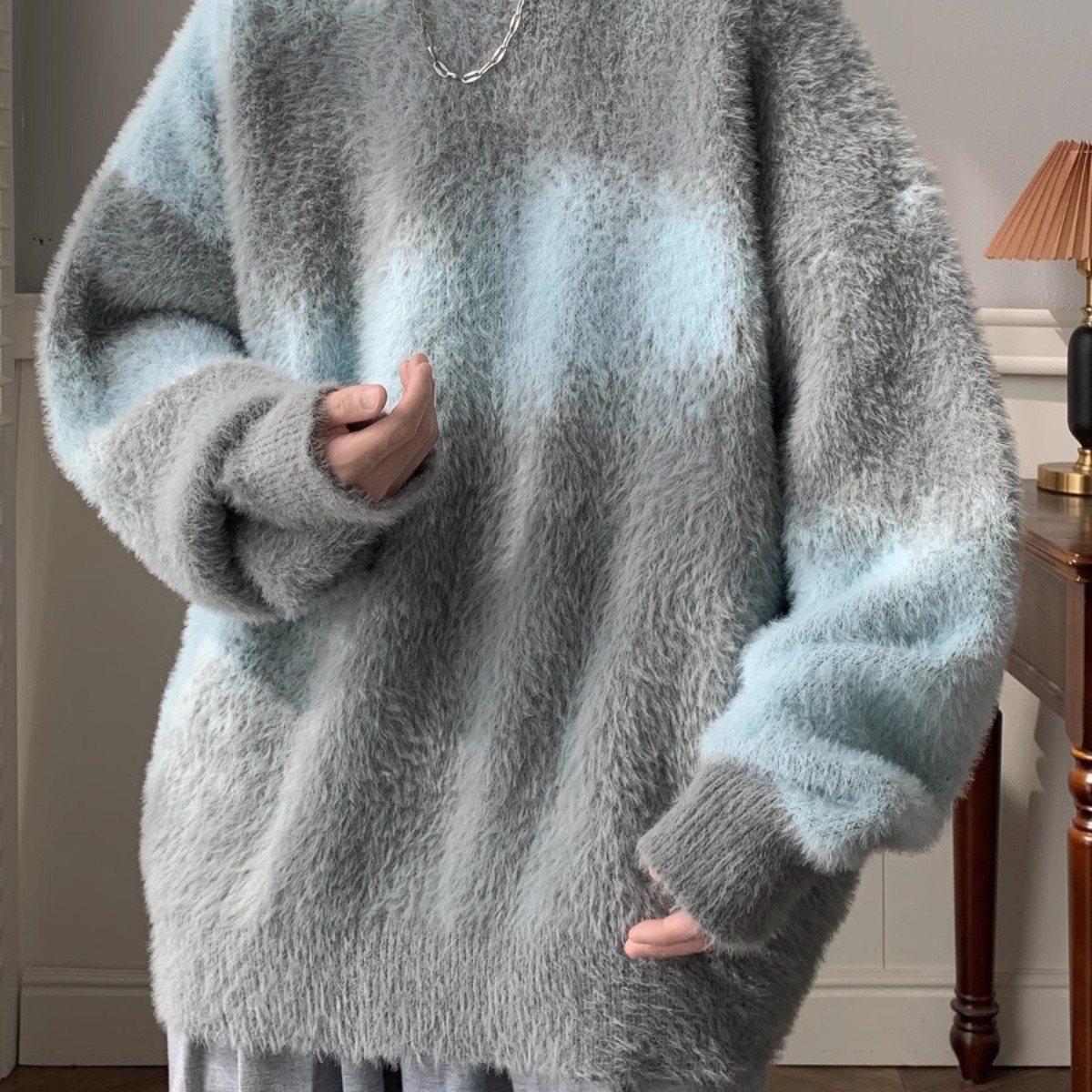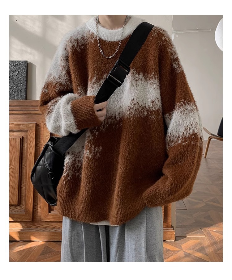 새로운 스웨터 남자의 가을과 겨울 두꺼운 미국 복고풍 패션 브랜드 타이-염료 디자인 크루 넥 게으른 니트 스웨터스토어 가기