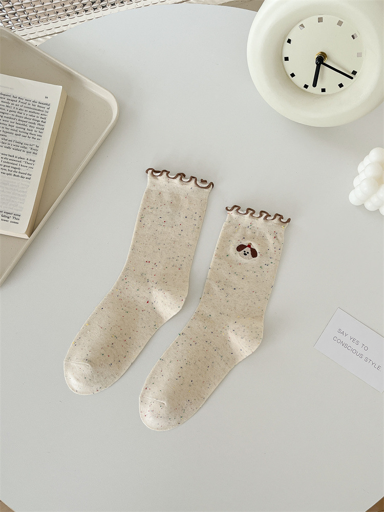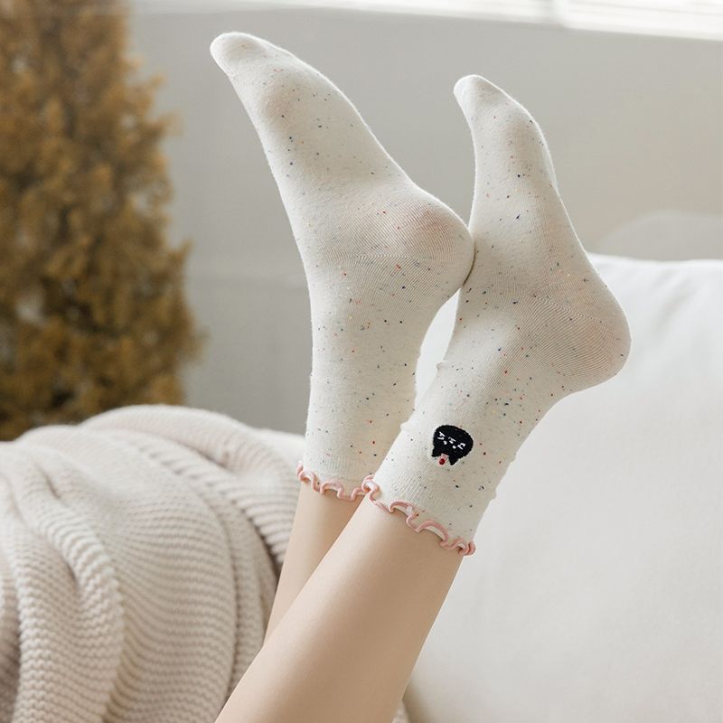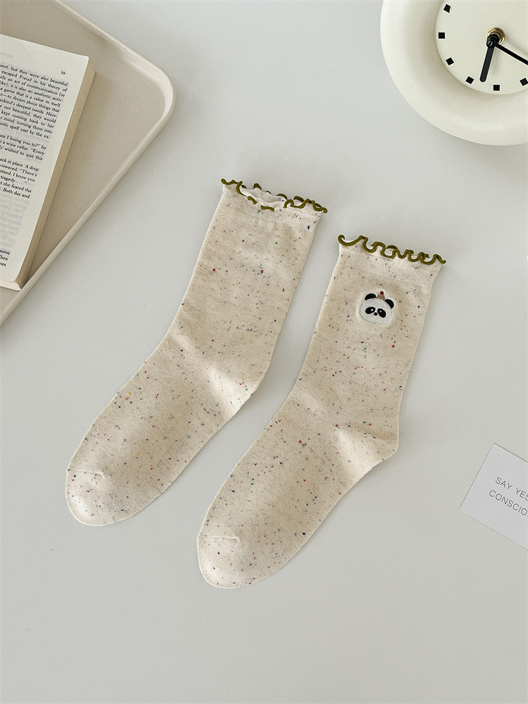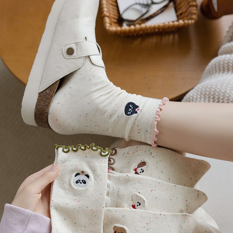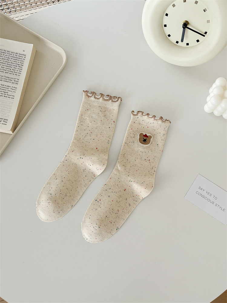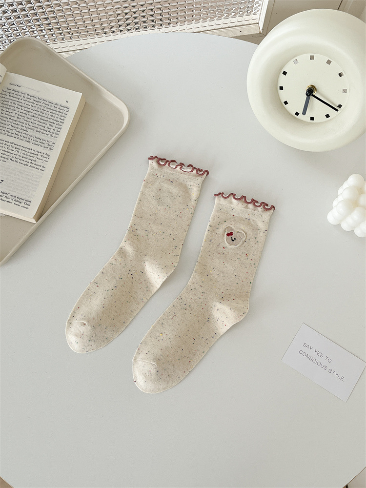 가을과 겨울 새로운 주지 양말 여성의 중간 길이 양말 귀여운 만화 잠금 곰 레이스 문 양말 포장 스타킹스토어 가기