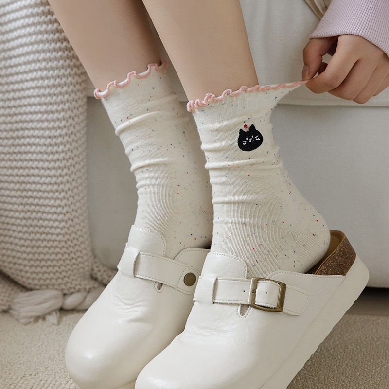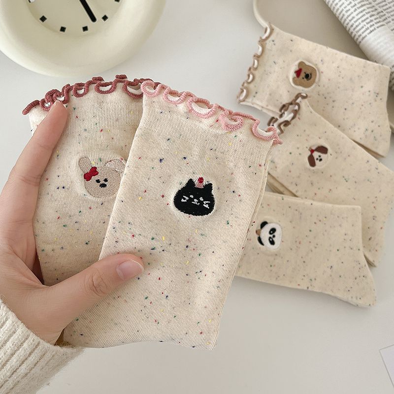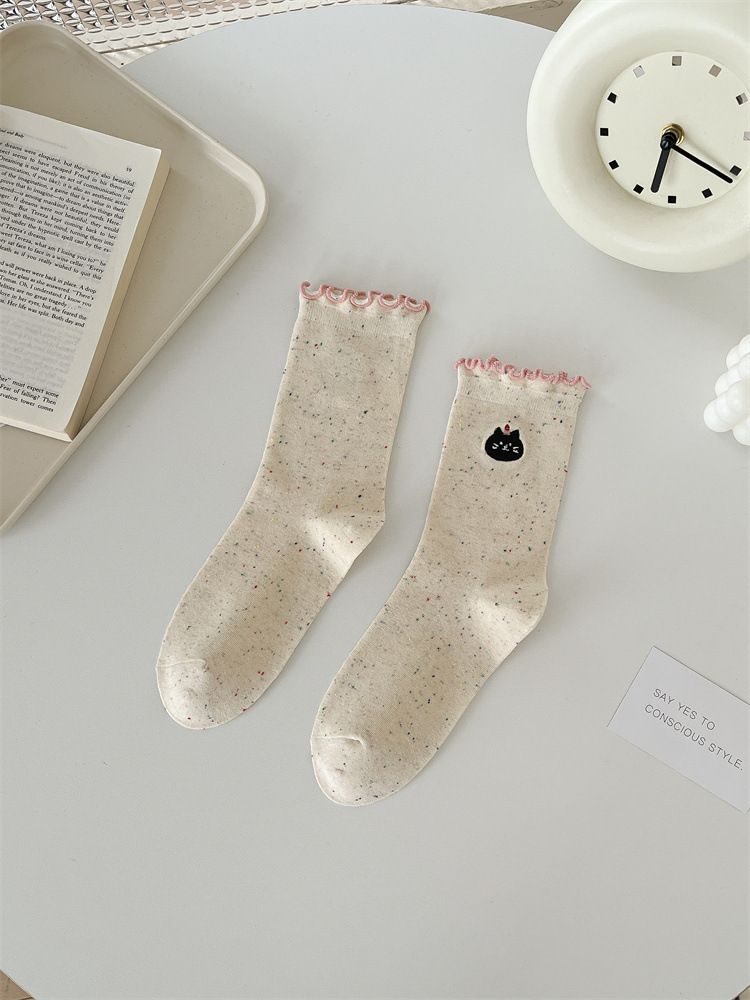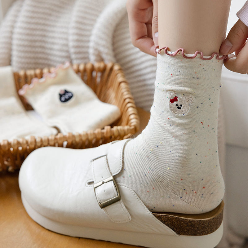 가을과 겨울 새로운 주지 양말 여성의 중간 길이 양말 귀여운 만화 잠금 곰 레이스 문 양말 포장 스타킹