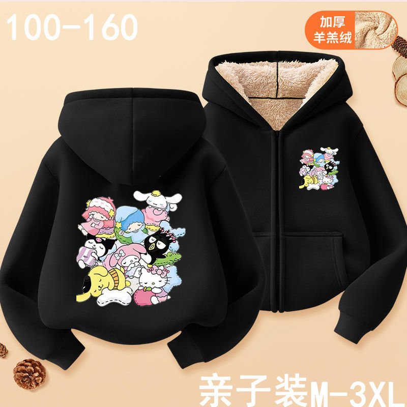 Kulomi Girls Zipper 기모 Stylisic Hoodie Sanrio 2024 Cardigan Jacket 새로운 어린이 봄과 가을