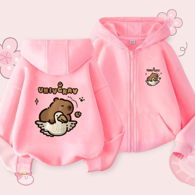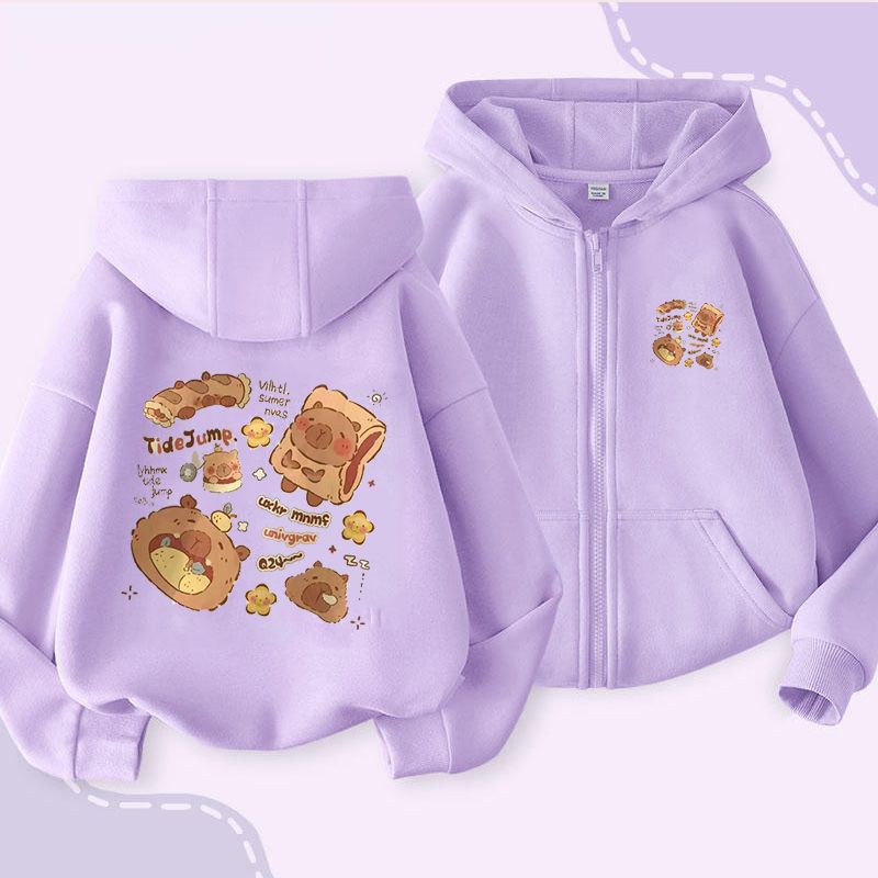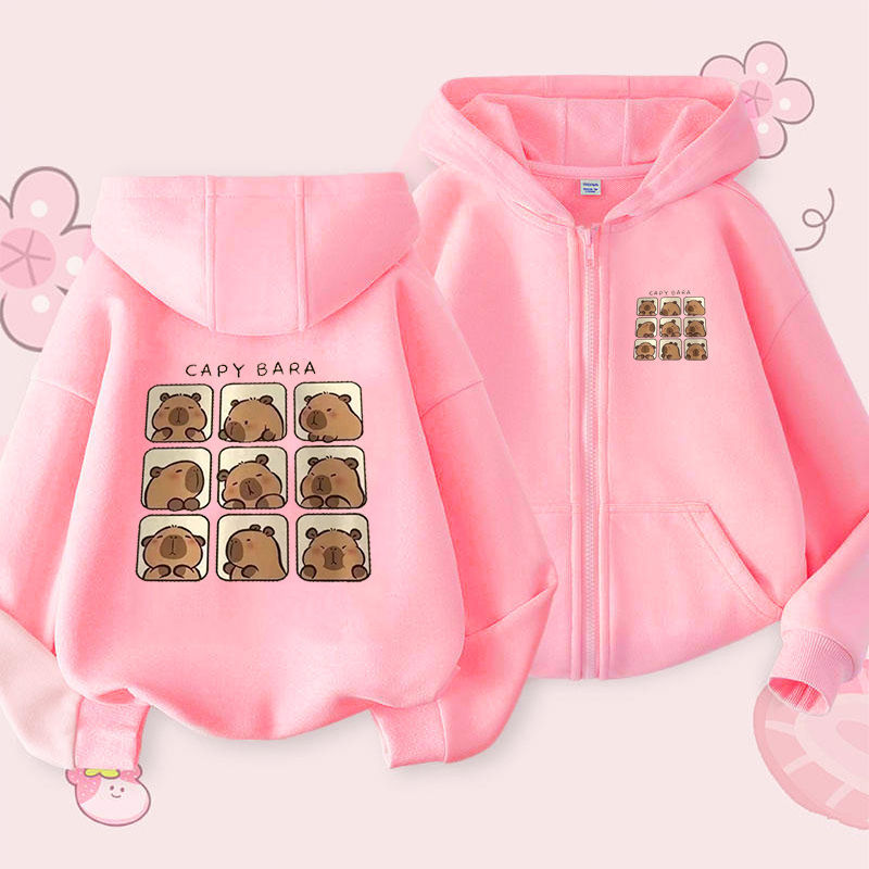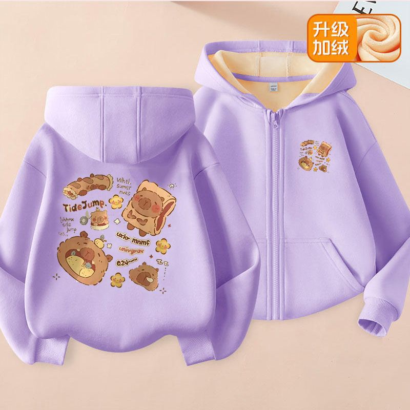 2024 어린이 후드 스웨터 재킷 카디건 카피 바라 카피 바라 가을 겨울 소녀 새 지퍼 스웨터