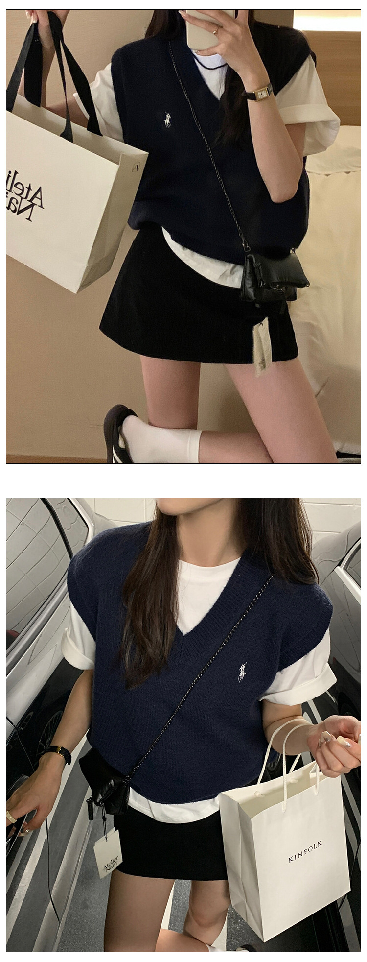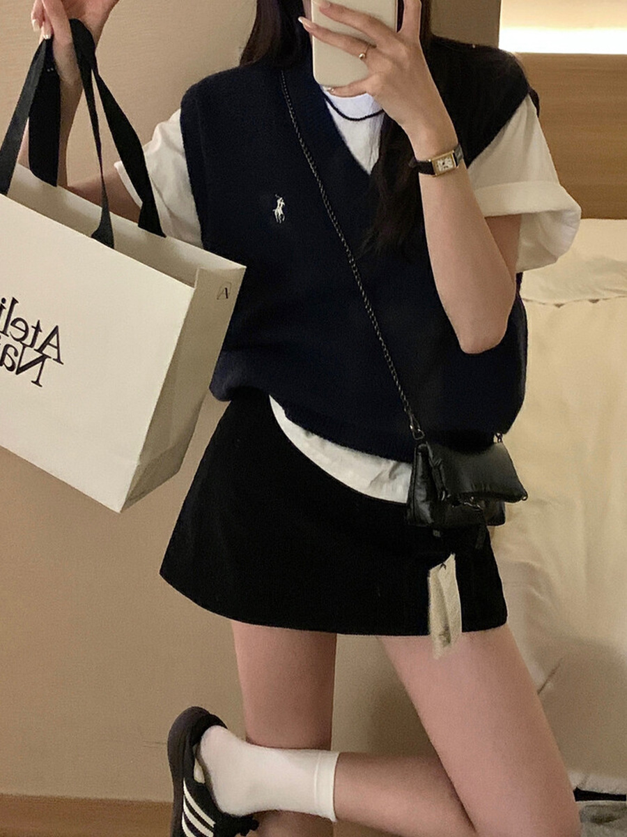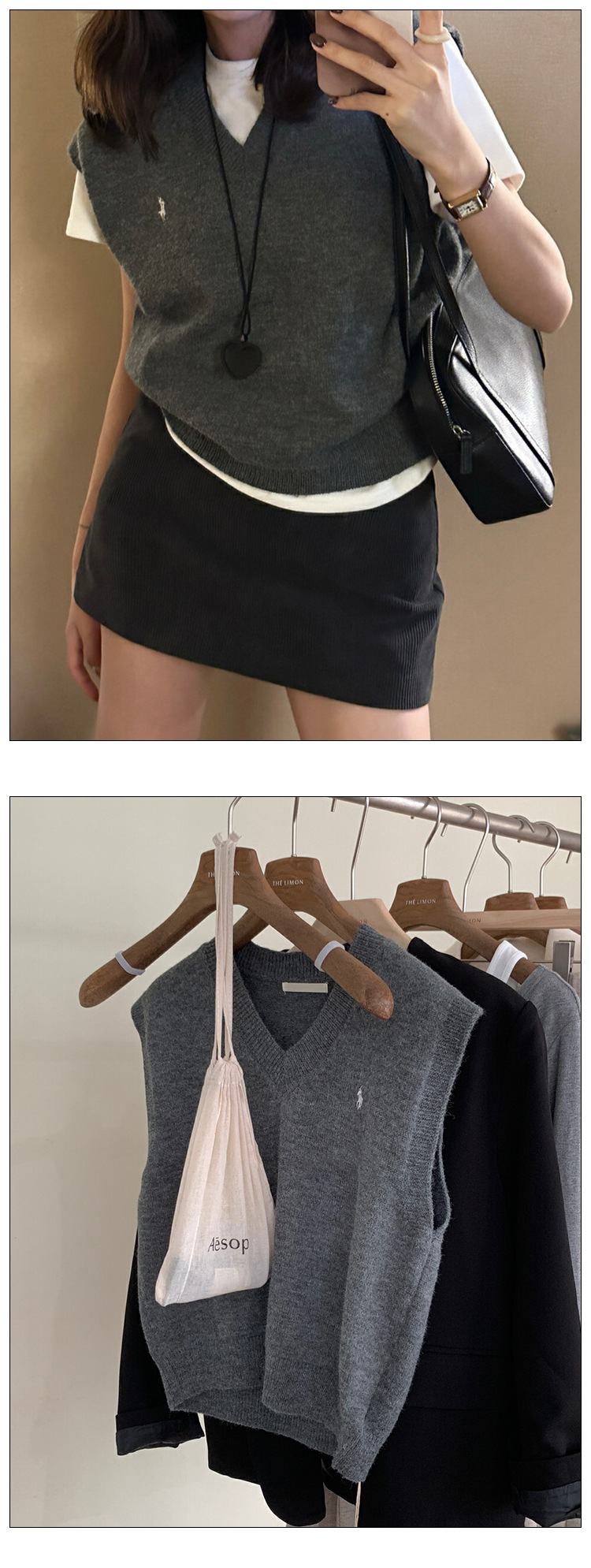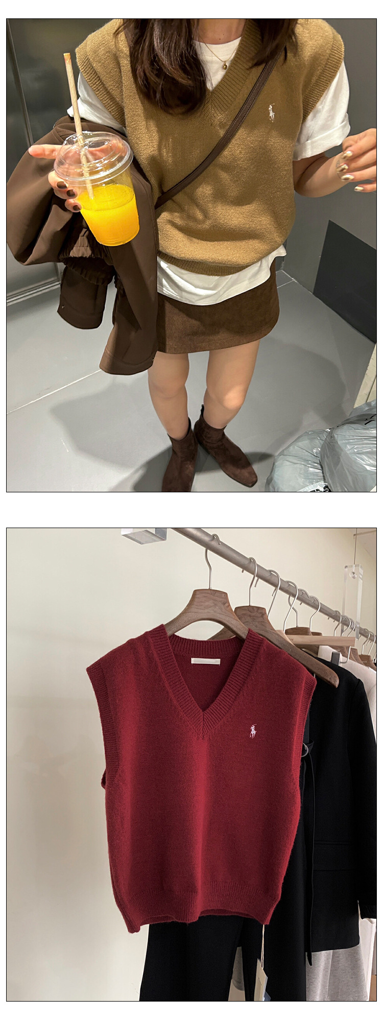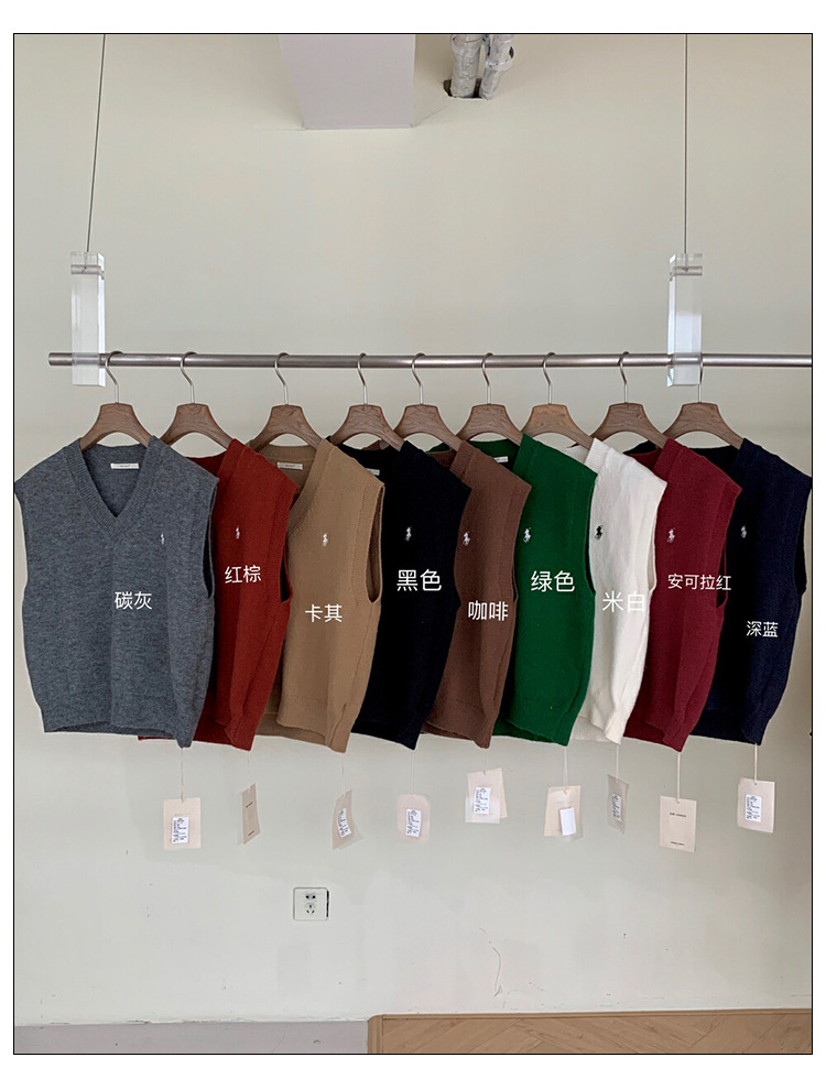 자수 브이넥 니트 조끼 여성용 가을 2025 신상 한국 스타일 루즈핏 겹겹이 착용 가능한 민소매 조끼 다용도스토어 가기