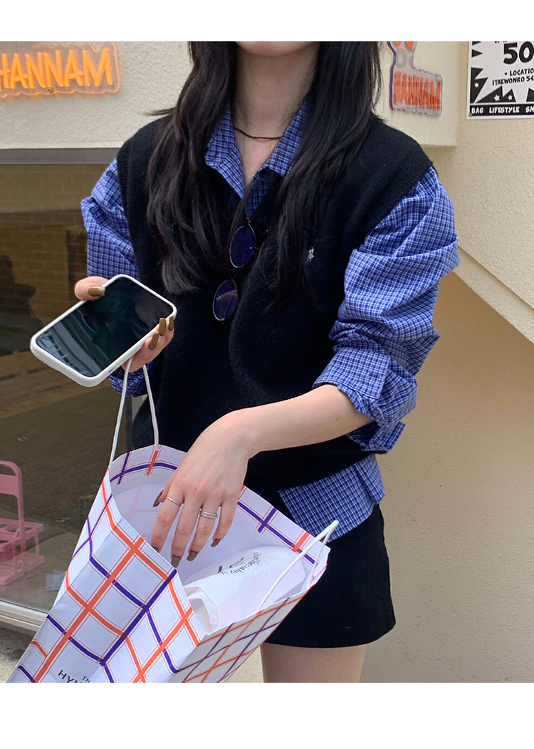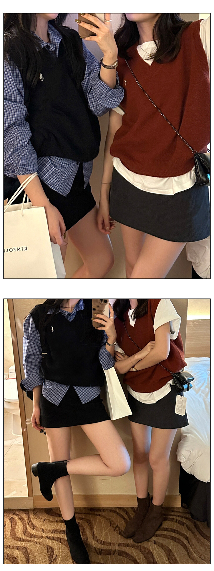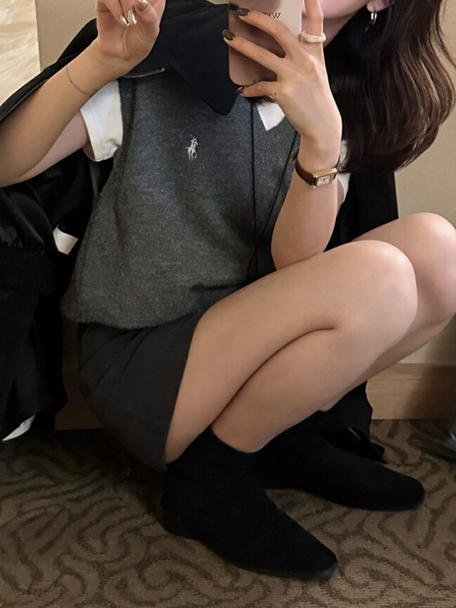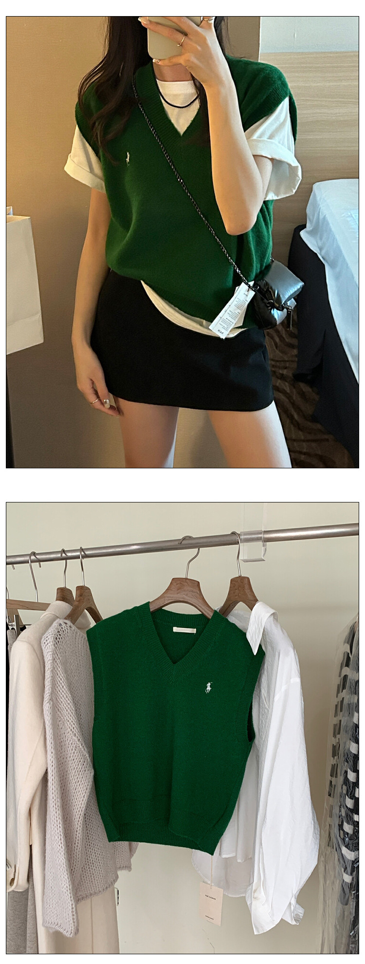 자수 브이넥 니트 조끼 여성용 가을 2025 신상 한국 스타일 루즈핏 겹겹이 착용 가능한 민소매 조끼 다용도스토어 가기