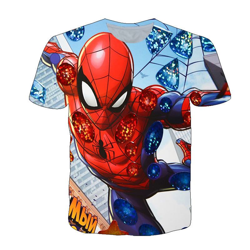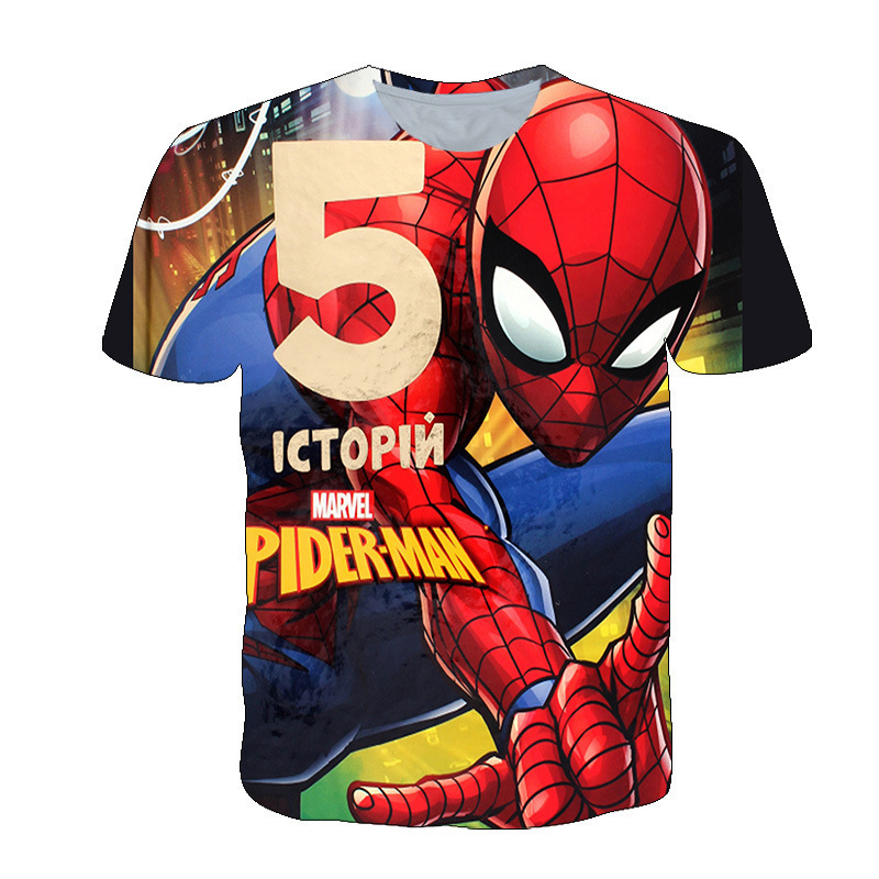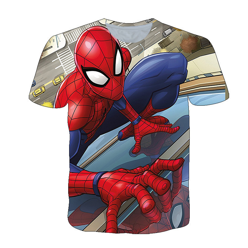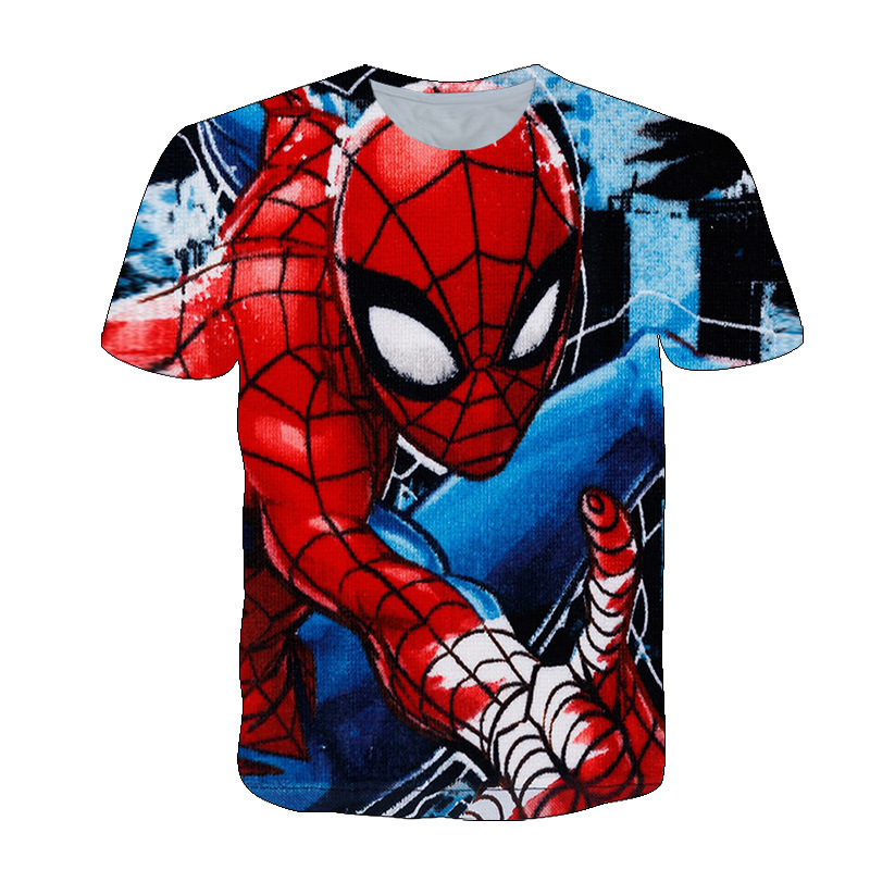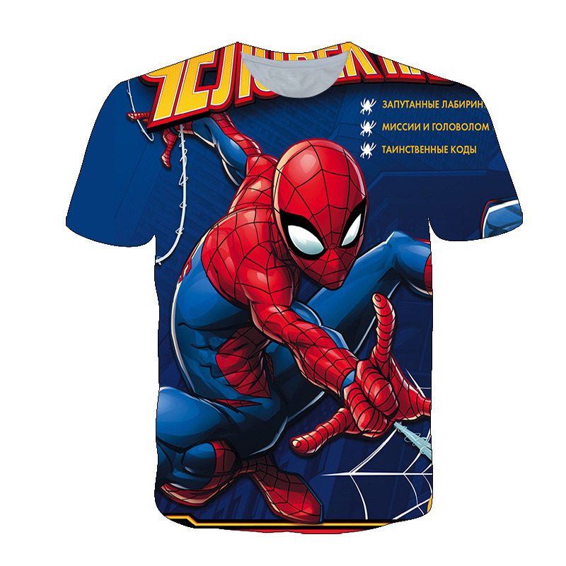 국경 간 뜨거운 판매 애니메이션 만화 소년 티셔츠 3d 인쇄 스파이더 맨 패션 트렌드 인쇄 짧은 소매 라운드 넥 탑