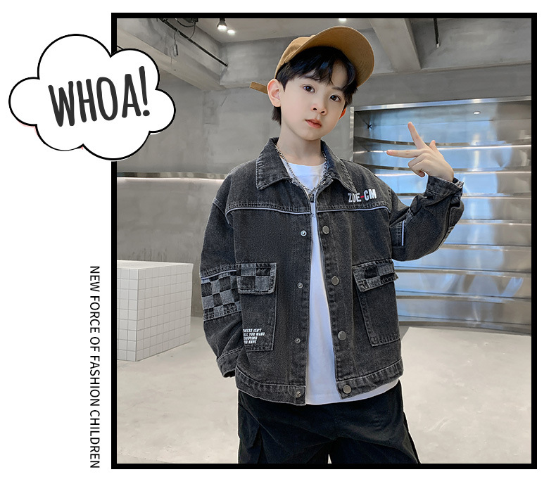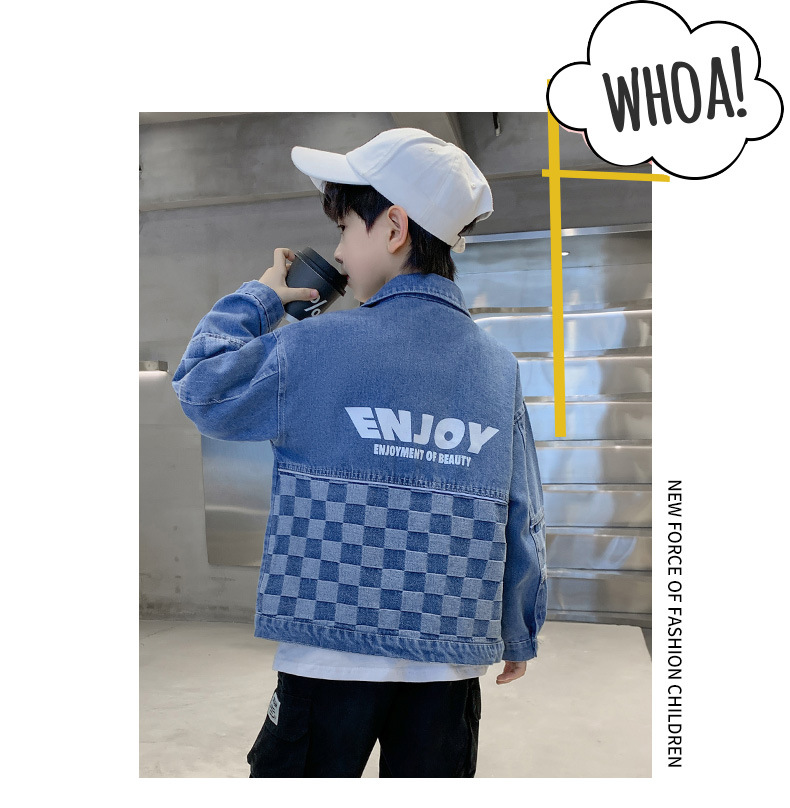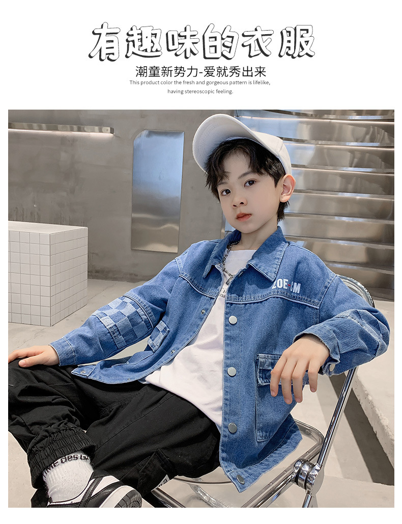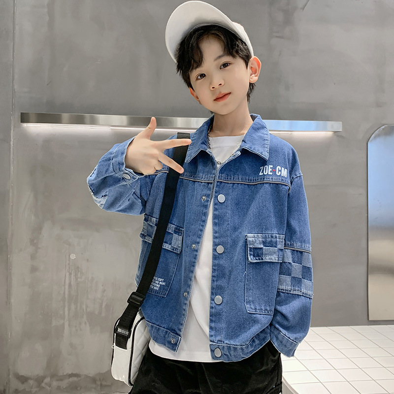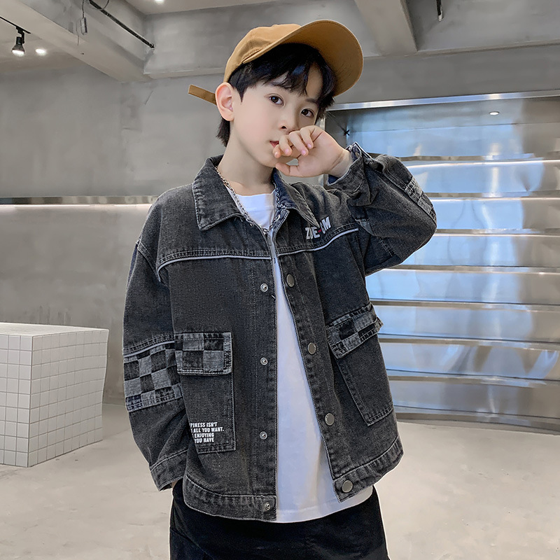 가을 2024 년 새 소년 데님 코트 한국식 외국식 편지 인쇄 패션 코트 재킷스토어 가기