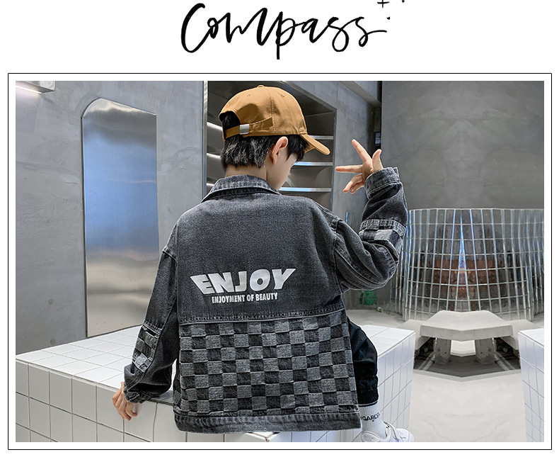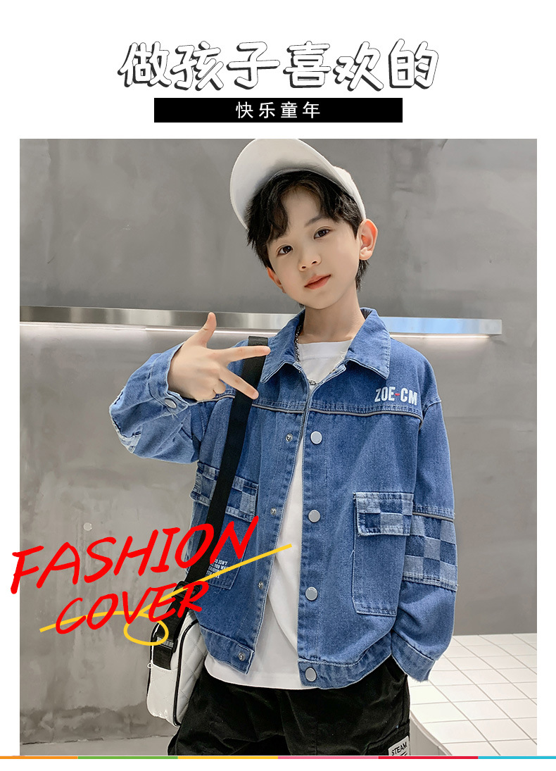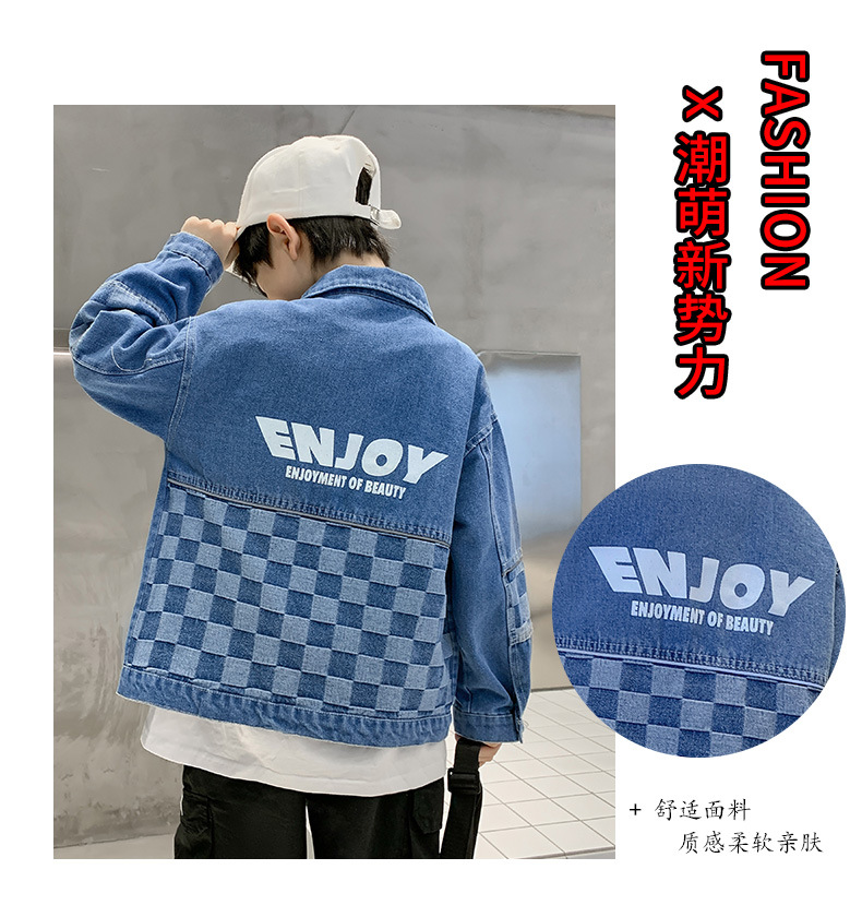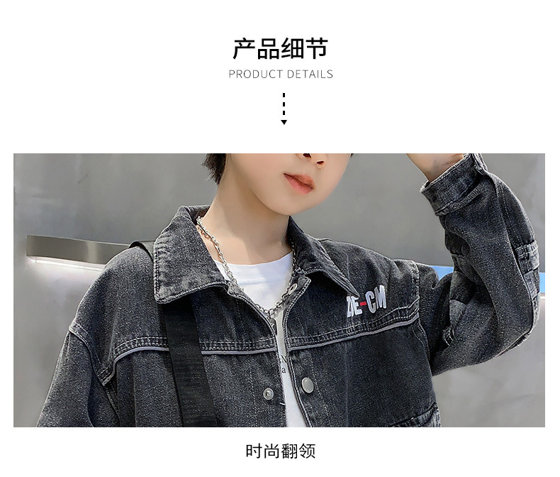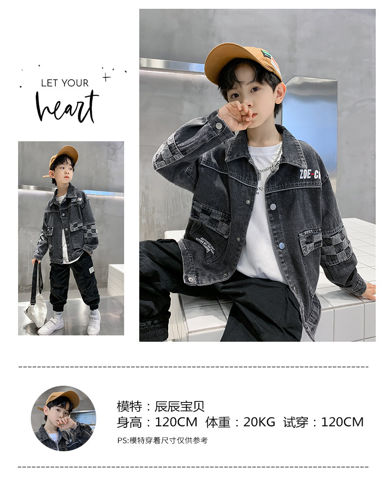 가을 2024 년 새 소년 데님 코트 한국식 외국식 편지 인쇄 패션 코트 재킷스토어 가기