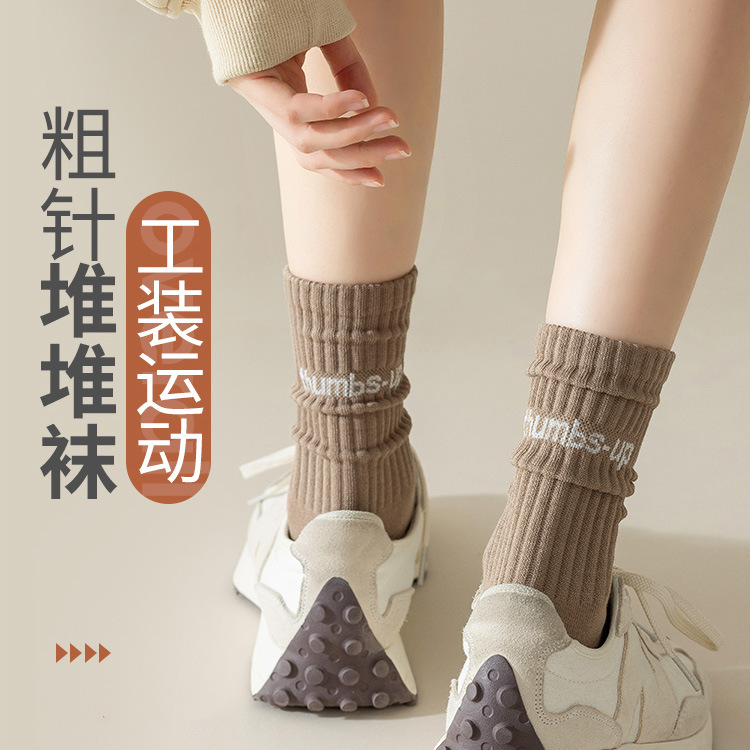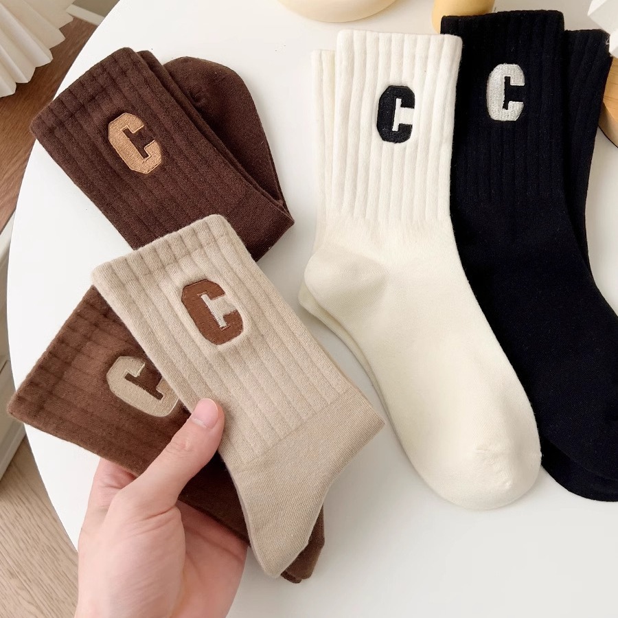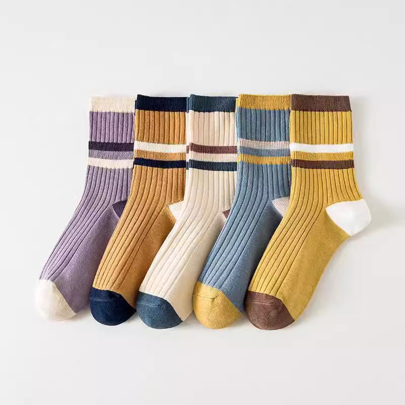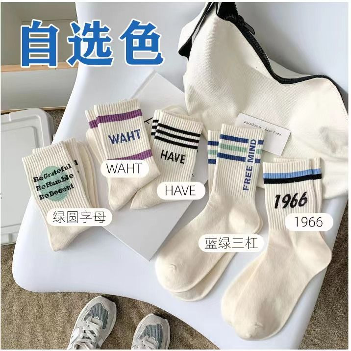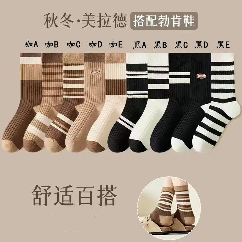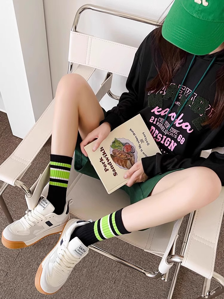 양말 여성 양말 가을, 겨울 중반 종아리 양말 패션 단순 줄무늬 인 트렌디 양말 대학 스타일 통기성 땀 흡수 스포츠 양말스토어 가기