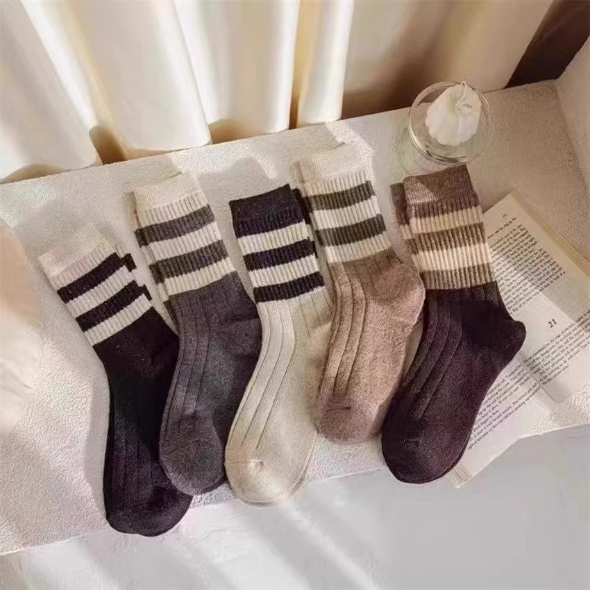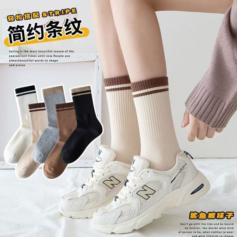 양말 여성 양말 가을, 겨울 중반 종아리 양말 패션 단순 줄무늬 인 트렌디 양말 대학 스타일 통기성 땀 흡수 스포츠 양말
