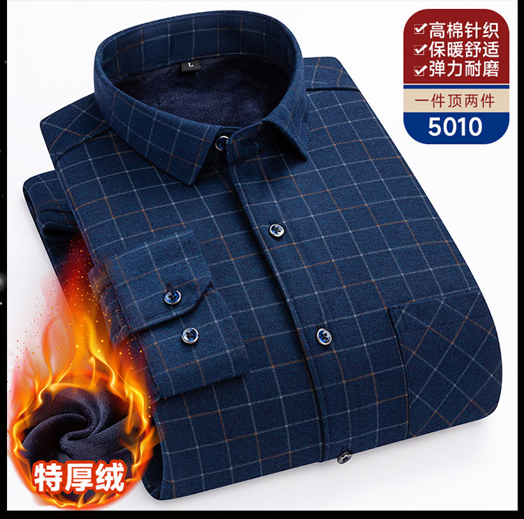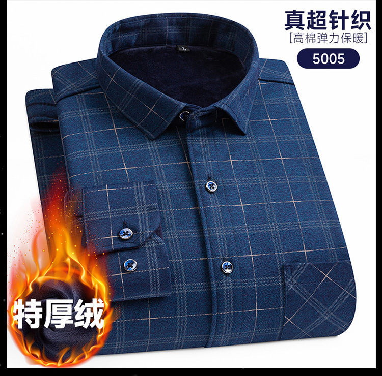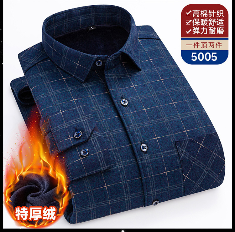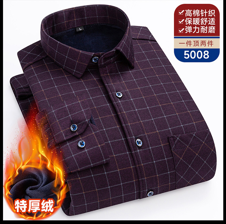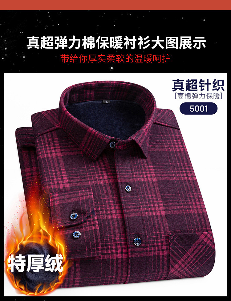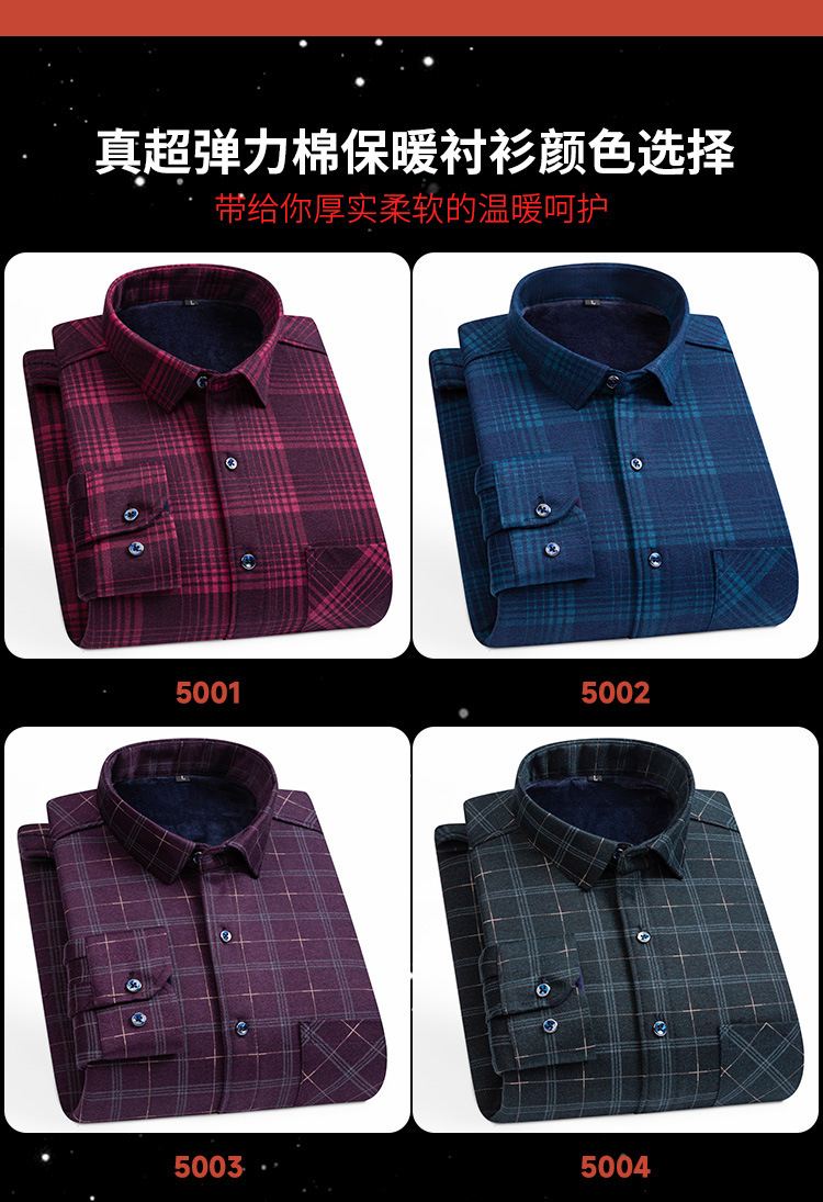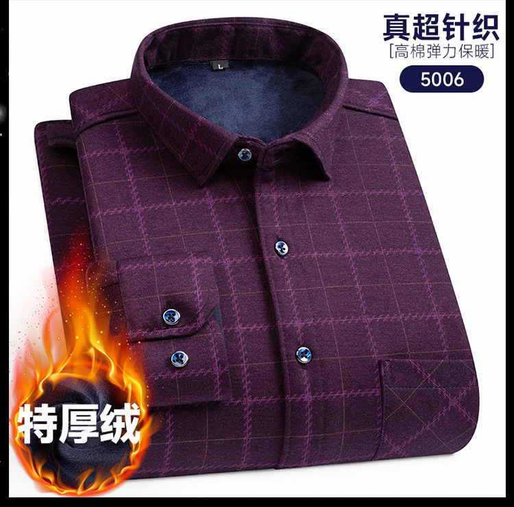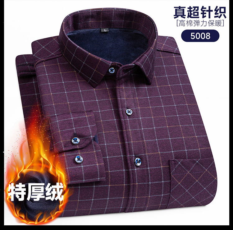 가을과 겨울 새로운 긴 소매 고급 니트 스트레치 코튼 따뜻한 셔츠 체크 무늬 비즈니스 캐주얼 남성 기모 두꺼운 라이닝스토어 가기