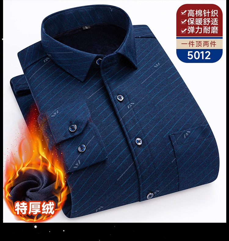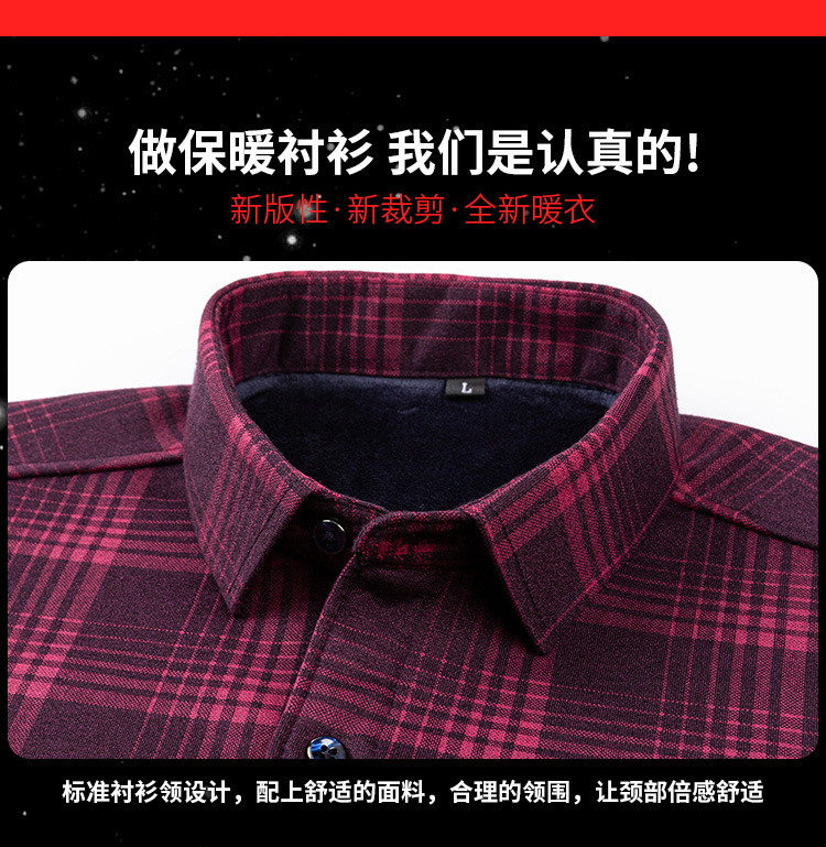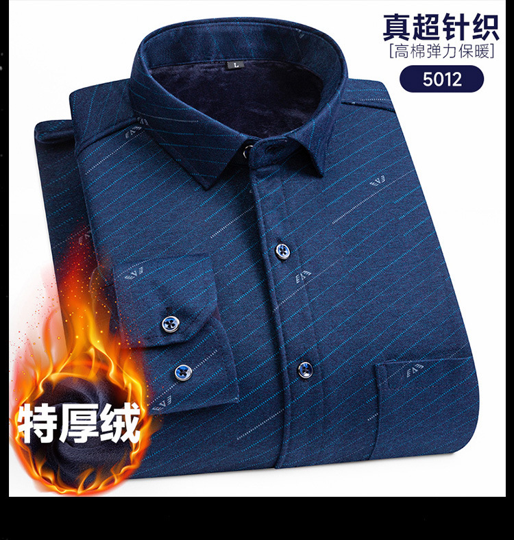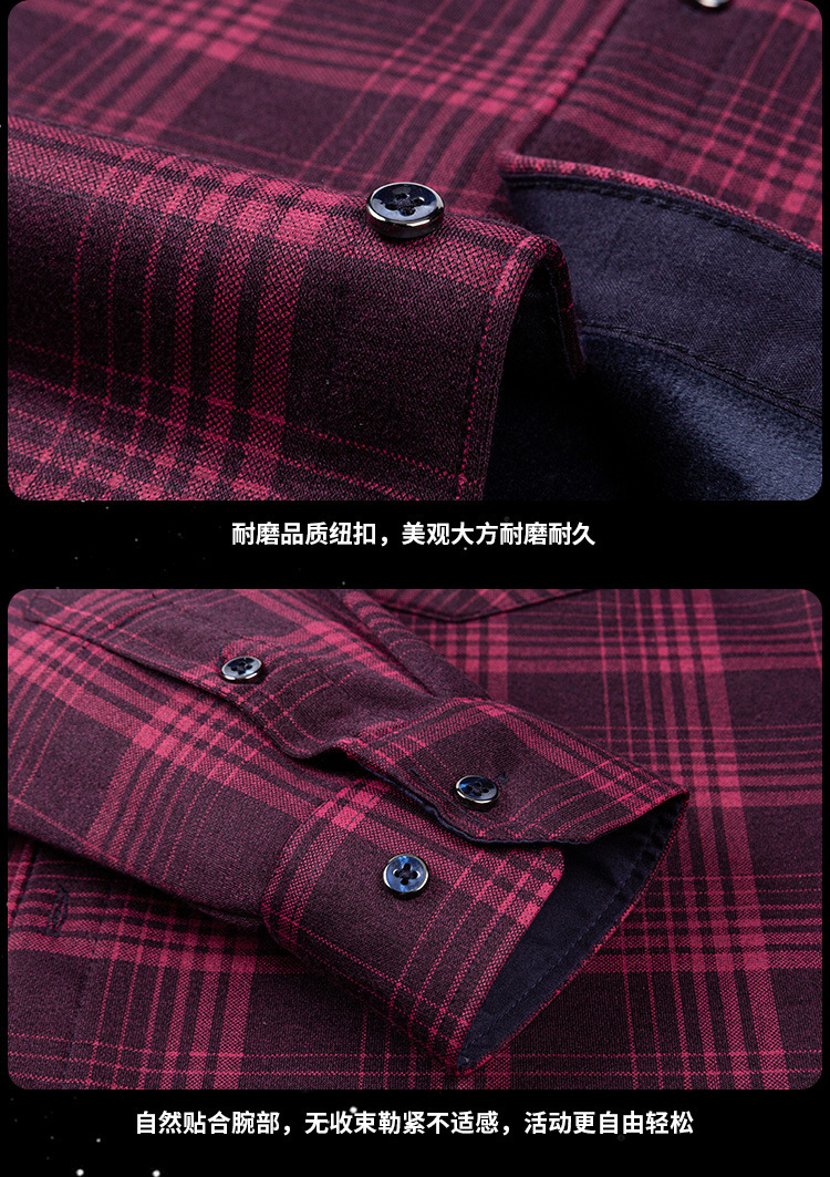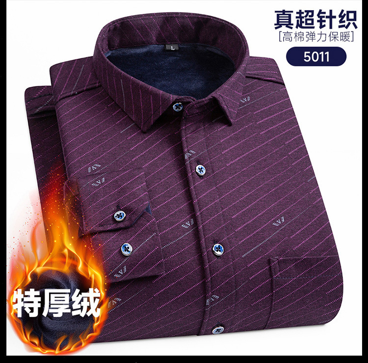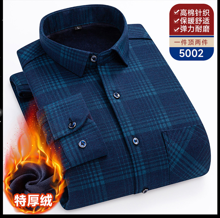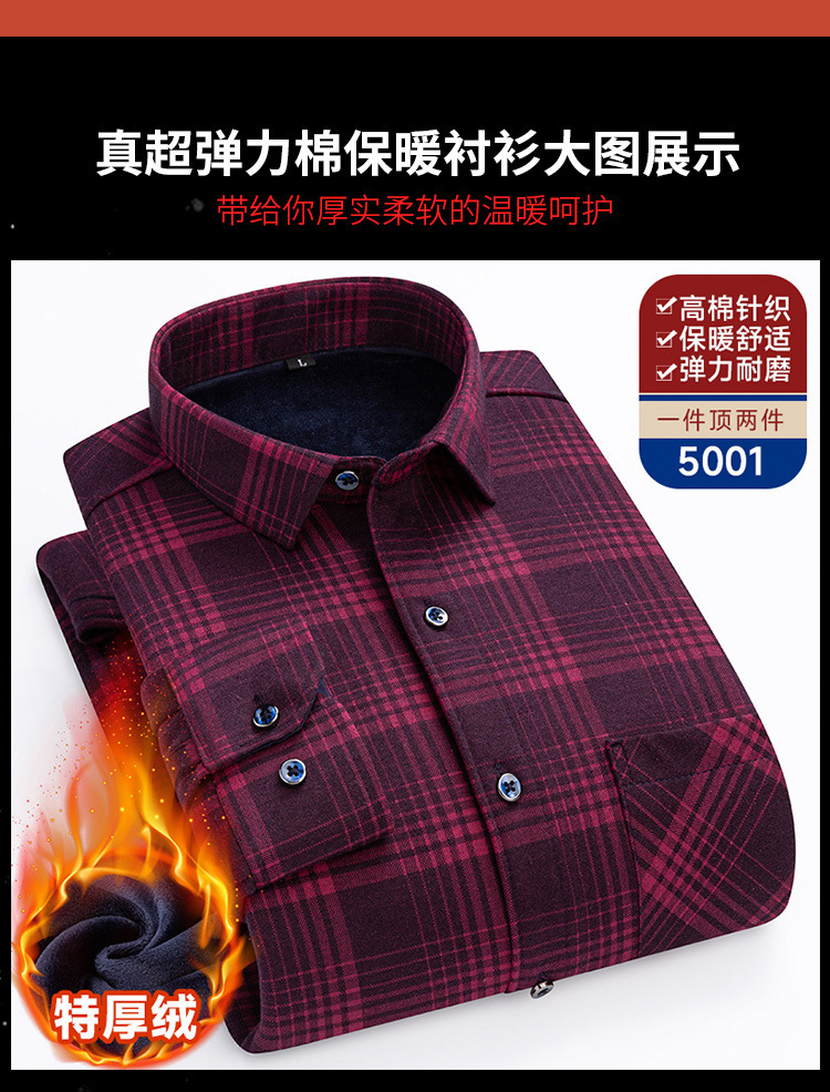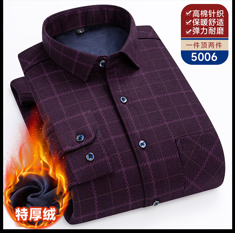 가을과 겨울 새로운 긴 소매 고급 니트 스트레치 코튼 따뜻한 셔츠 체크 무늬 비즈니스 캐주얼 남성 기모 두꺼운 라이닝스토어 가기