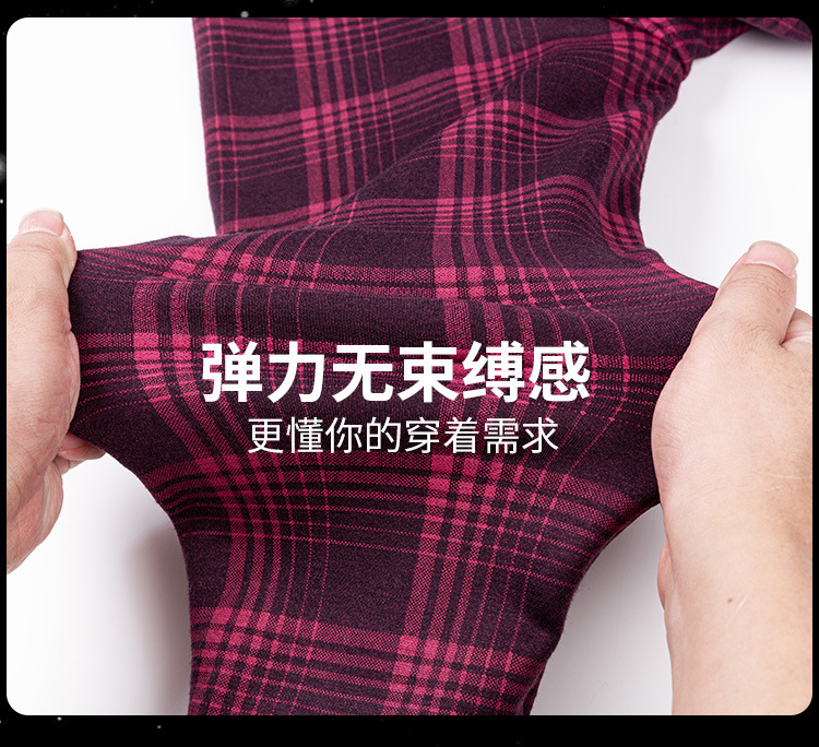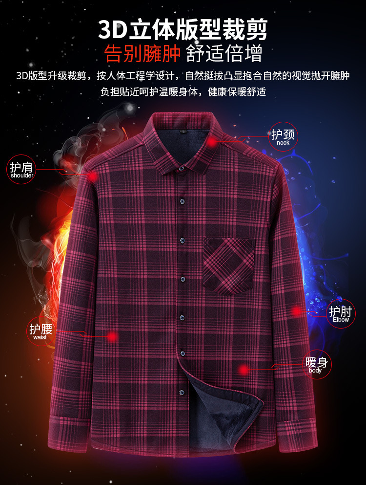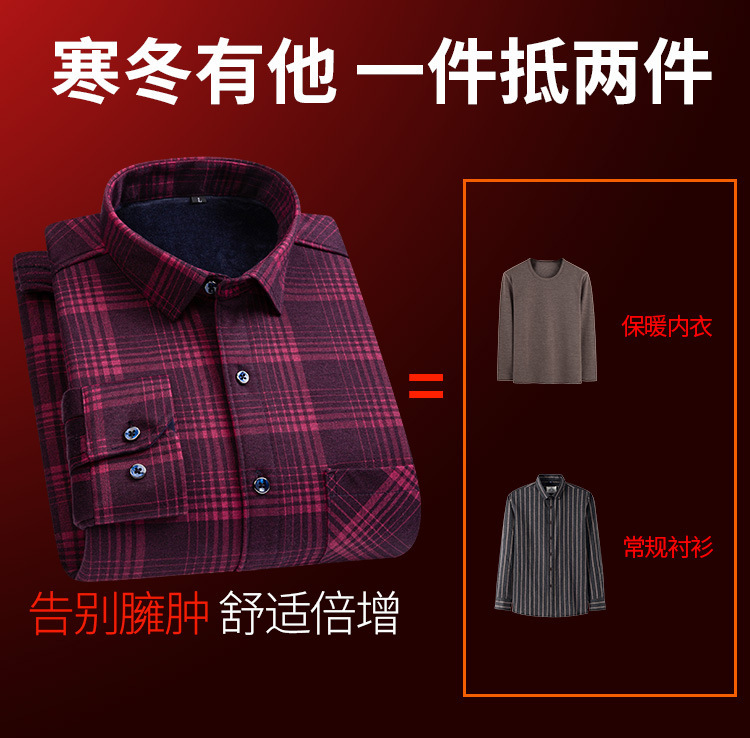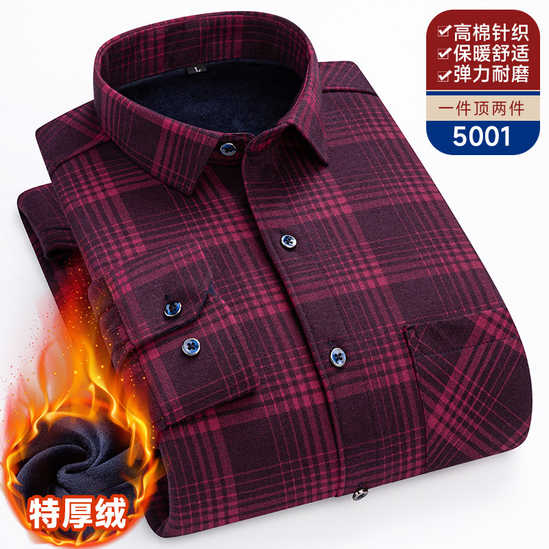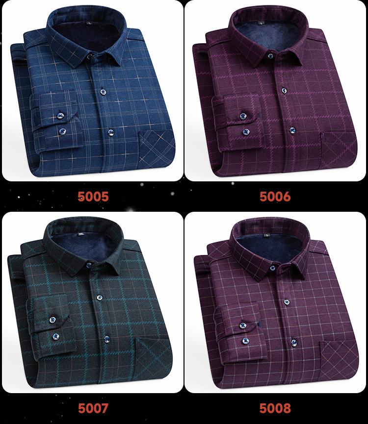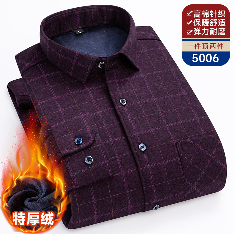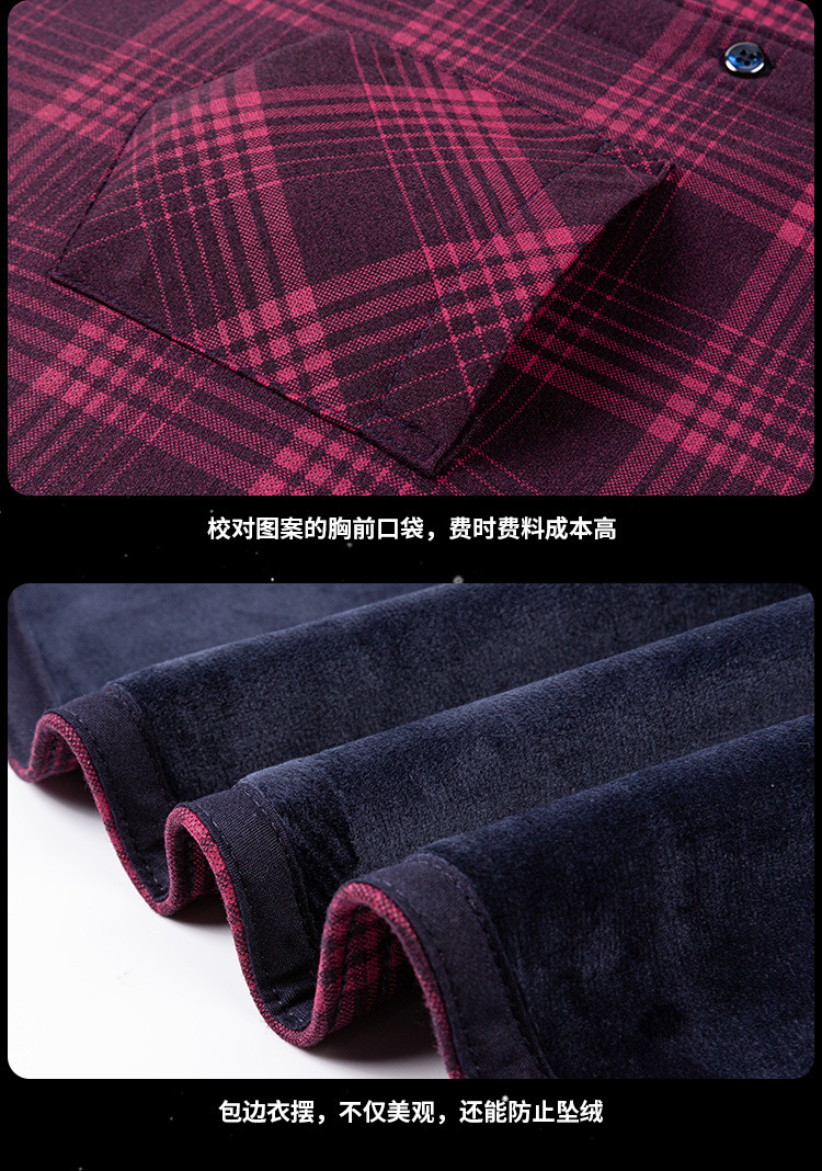가을과 겨울 새로운 긴 소매 고급 니트 스트레치 코튼 따뜻한 셔츠 체크 무늬 비즈니스 캐주얼 남성 기모 두꺼운 라이닝스토어 가기