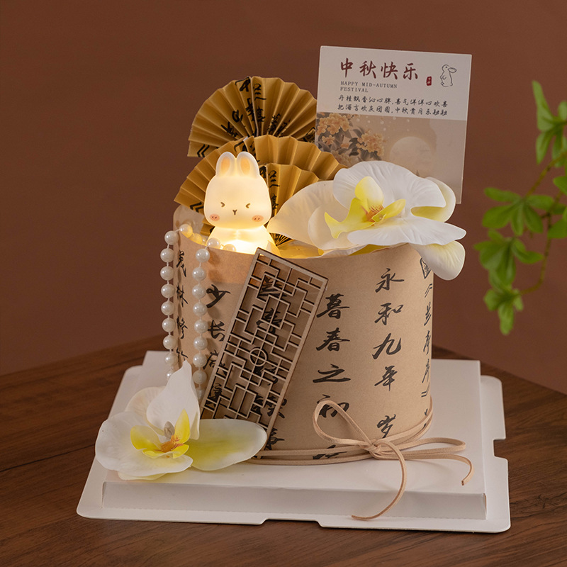 2024 중추절 새로운 중국 스타일 국가 스타일 케이크 장식 난초 난초 파빌리온 시퀀스 Phalaenopsis 화면 접는 팬 토끼 플러그인스토어 가기