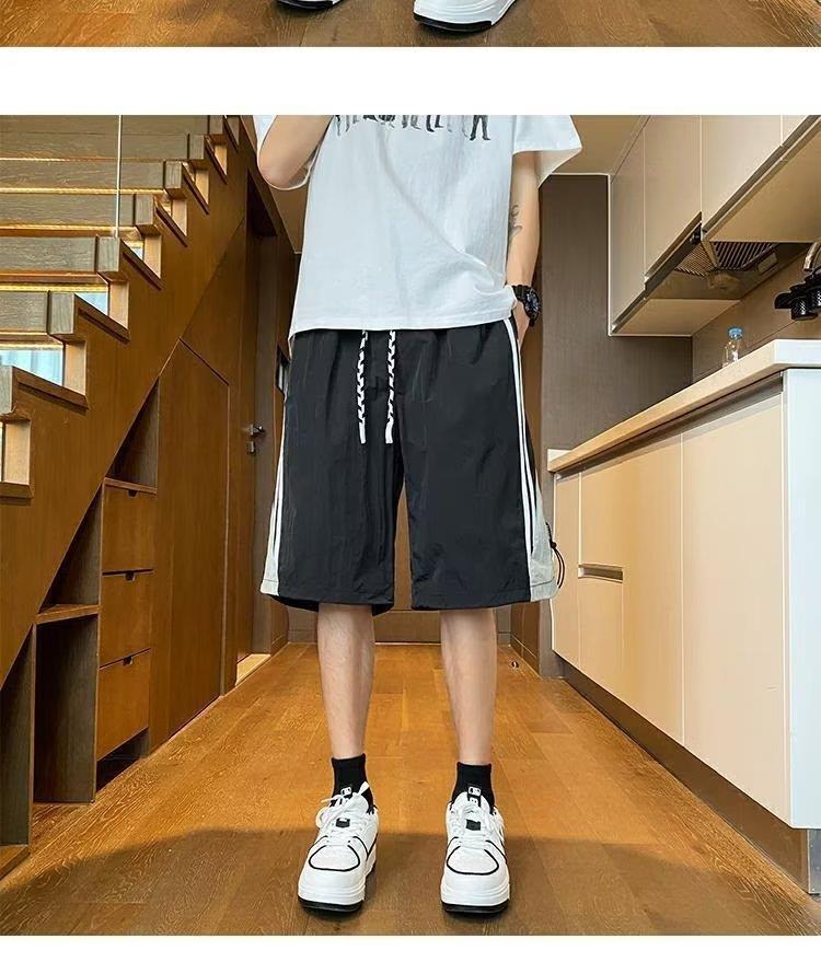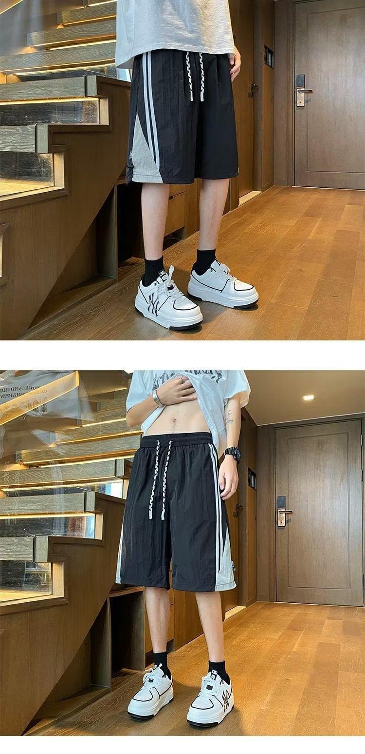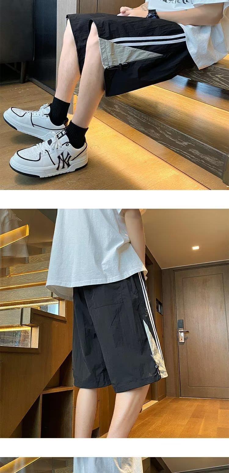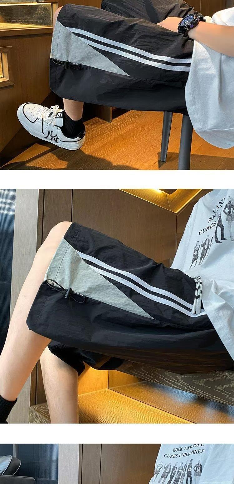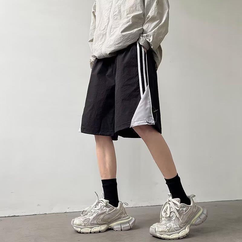 여름 스포츠 농구 미국의 빠른 건조 줄무늬 반바지 남자 5 점 바지 유행 브랜드 Yipi Shuai Bang Street 플러스 사이즈 러닝 바지