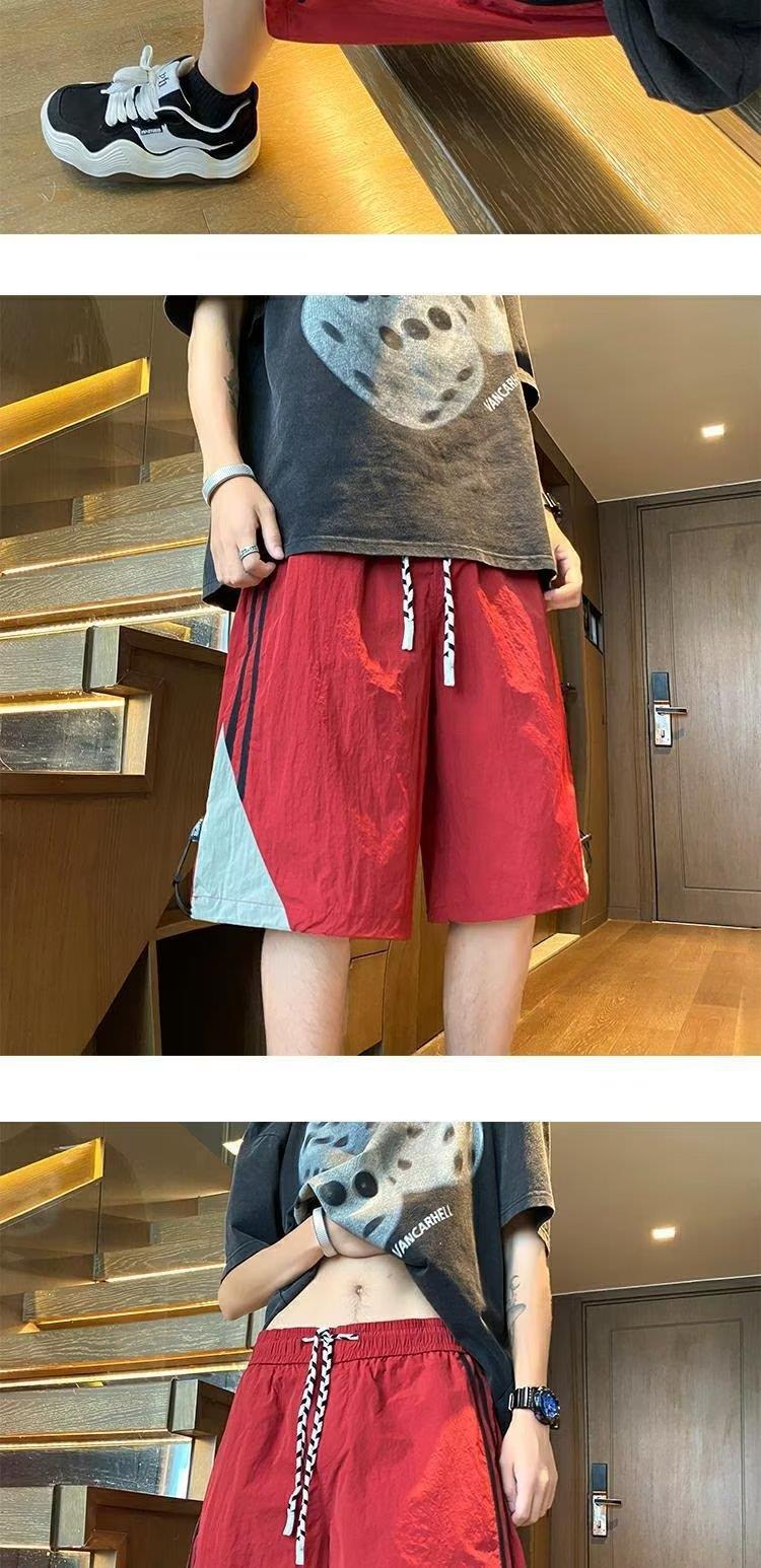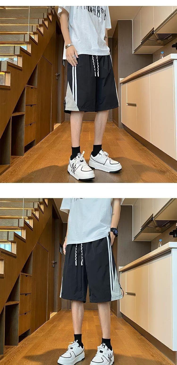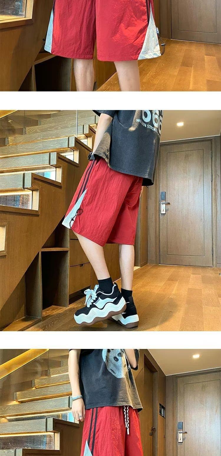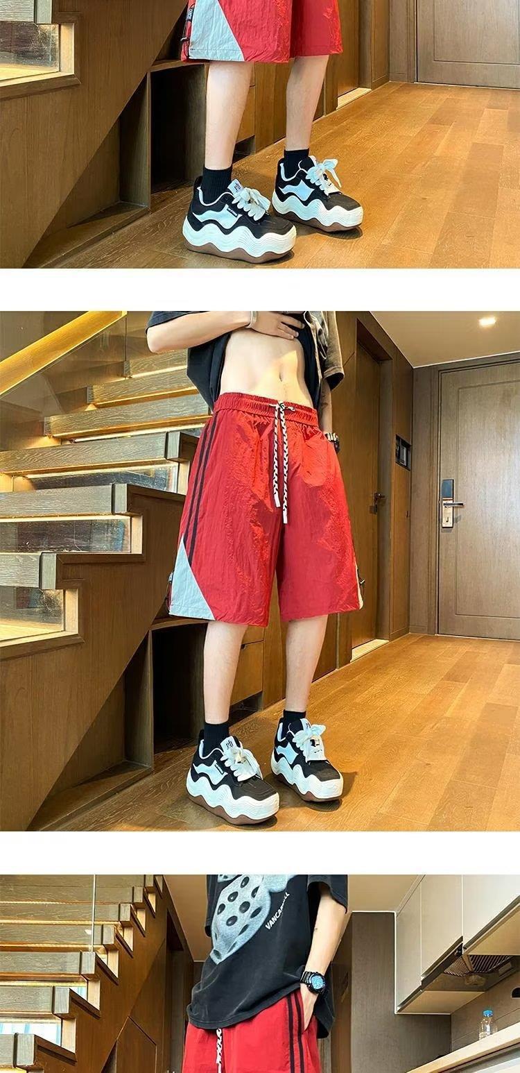 여름 스포츠 농구 미국의 빠른 건조 줄무늬 반바지 남자 5 점 바지 유행 브랜드 Yipi Shuai Bang Street 플러스 사이즈 러닝 바지