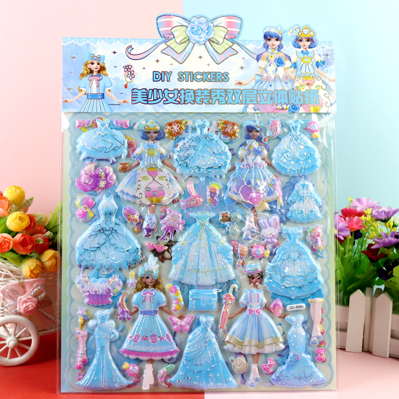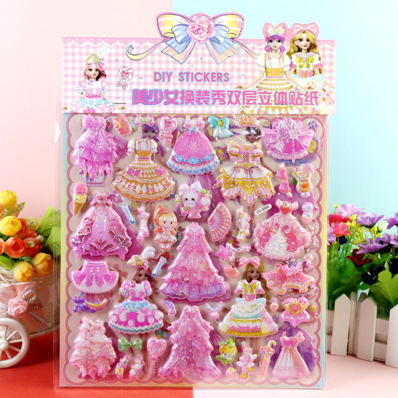 어린이 만화 더블 레이어 3 차원 도서관 Lomi Meruti 원피스 업 스티커 스테레오 대형 Capibala 버블 스티커