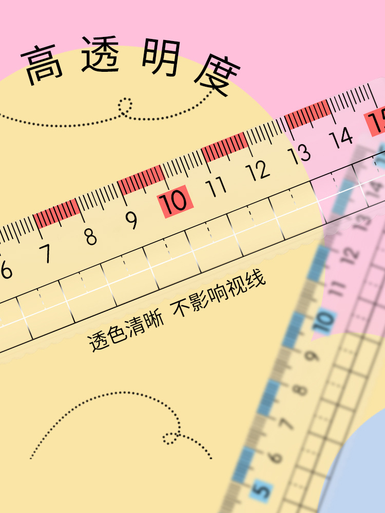 학생 투명 통치자 아크릴 웨이브 라인 20cm 그림 측정 통치자 두꺼운 통치자스토어 가기