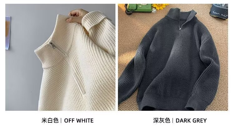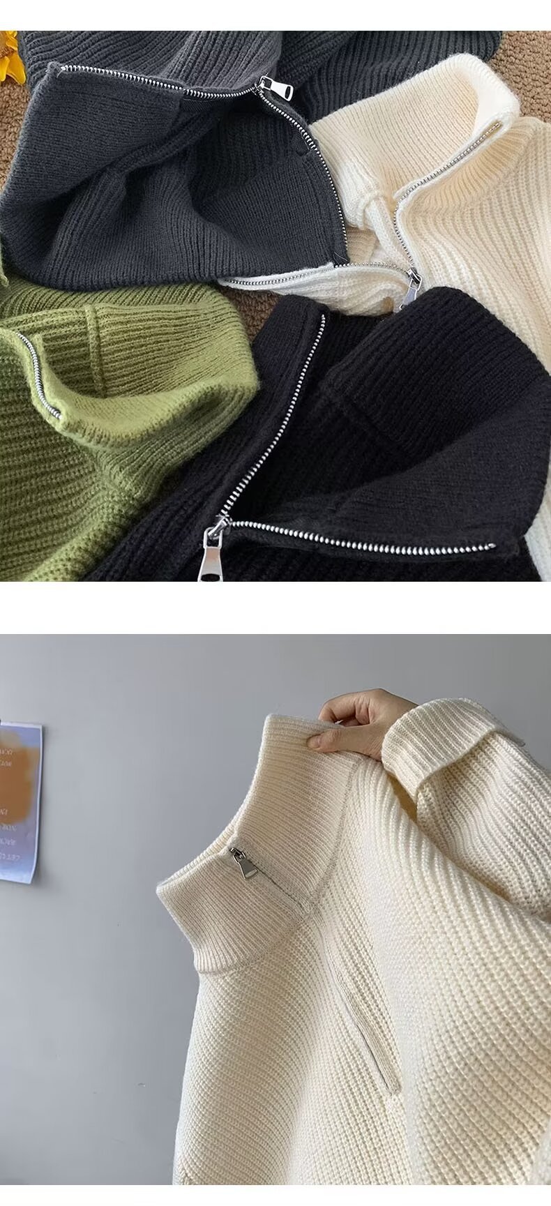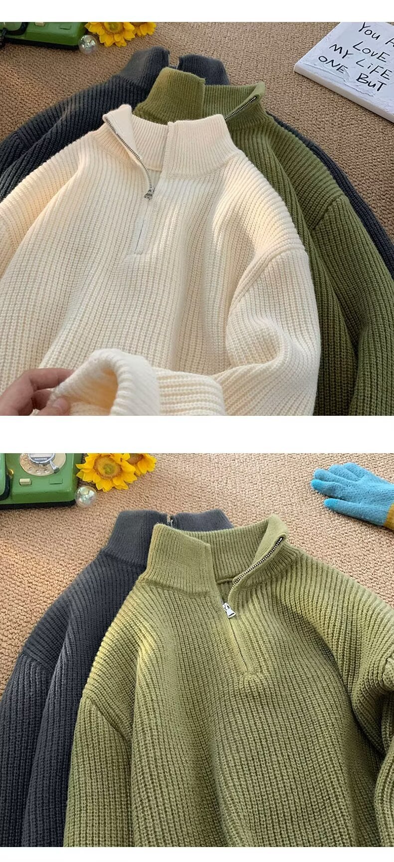 하프 터틀넥 지퍼 풀오버 스웨터 남자 가을과 겨울 홍콩 스타일 복고풍 게으른 일본 스타일 올 매치 커플 스웨터