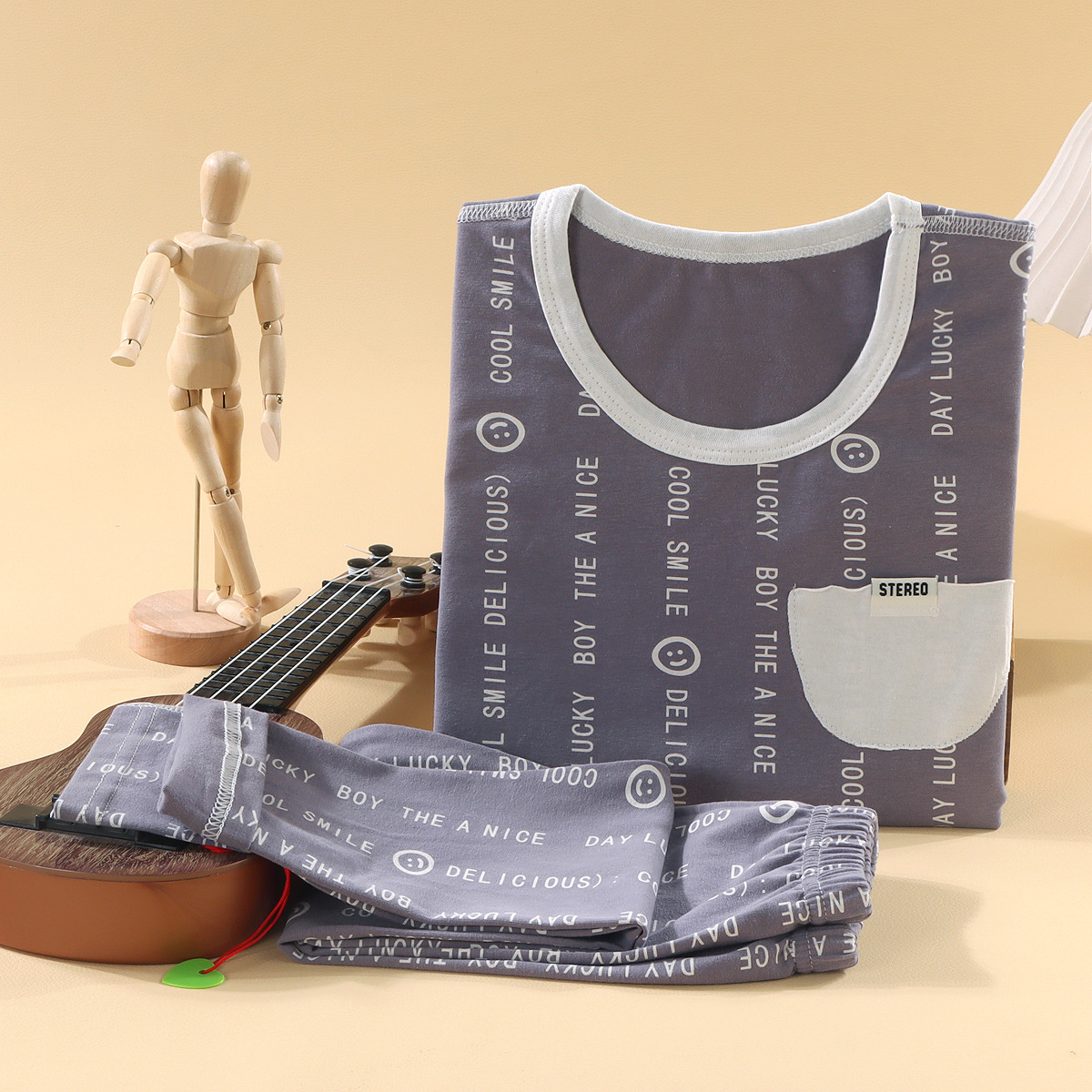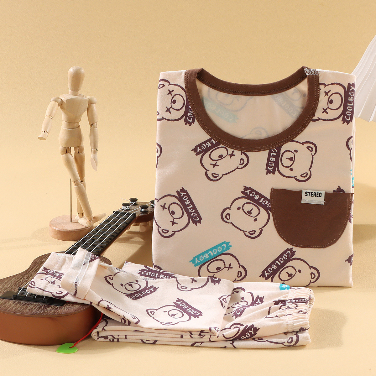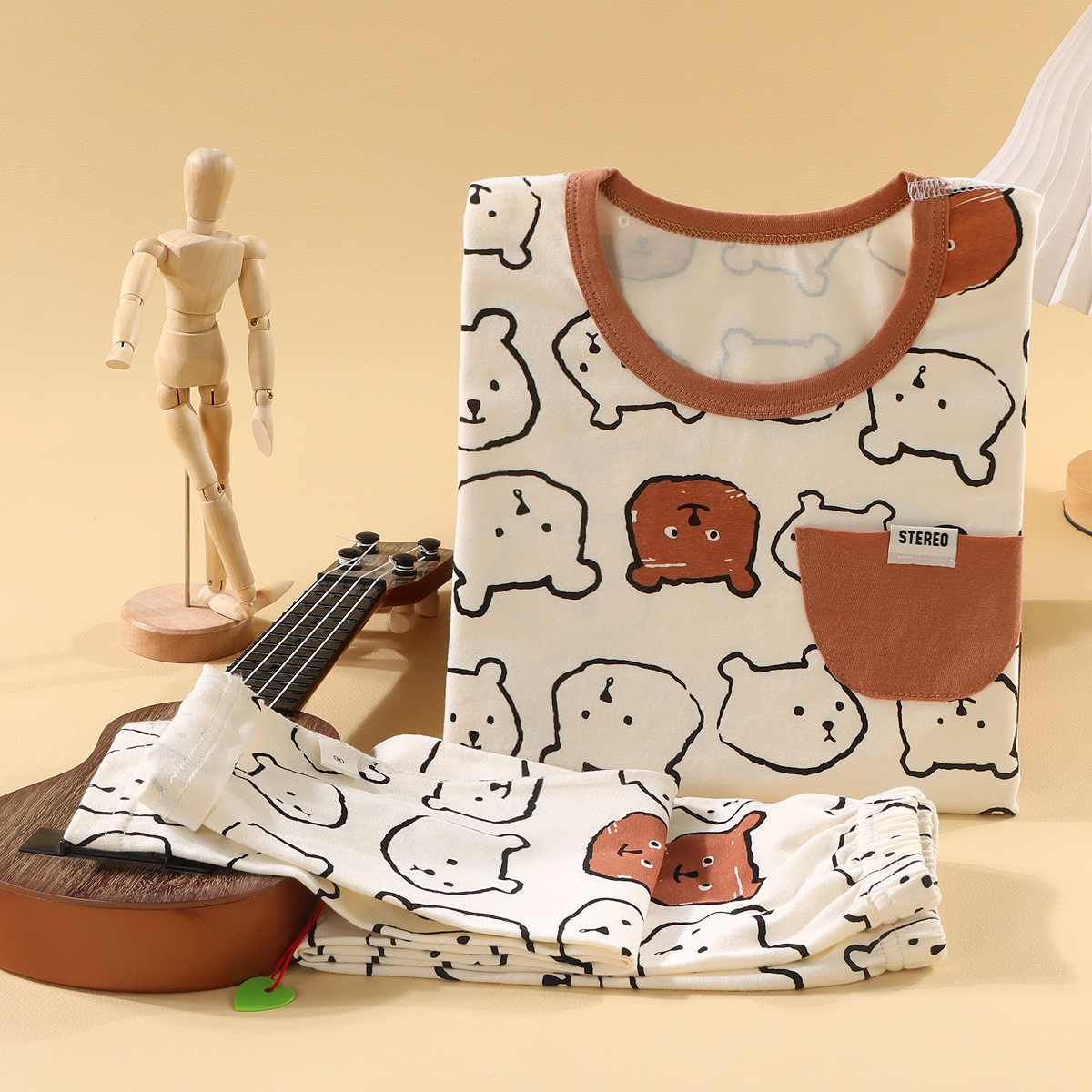 어린이 뼈없는 가을 옷과 긴 바지 세트 소년과 소녀 라이크라 홈 잠옷 아기 만화 탑 속옷 바지스토어 가기