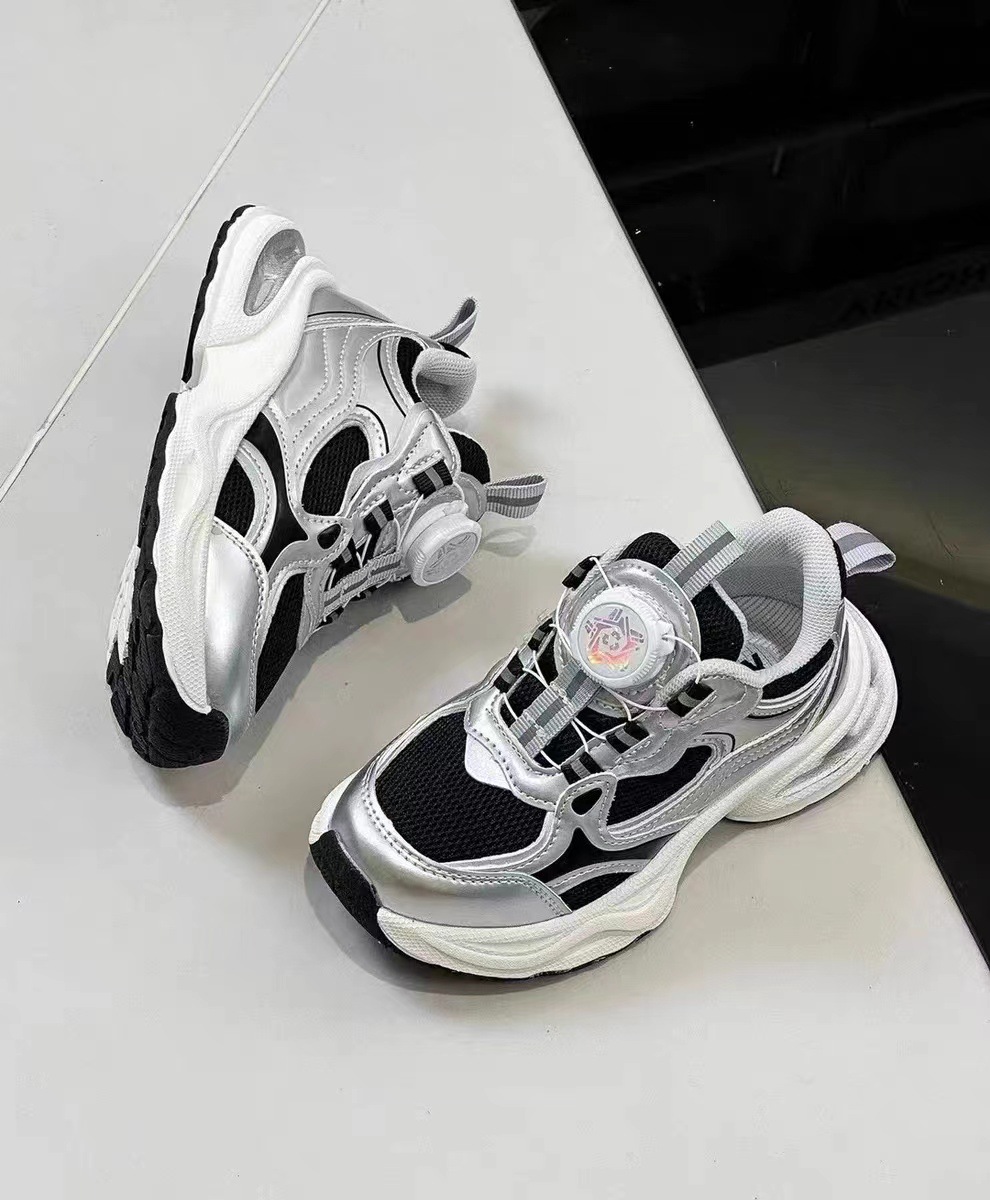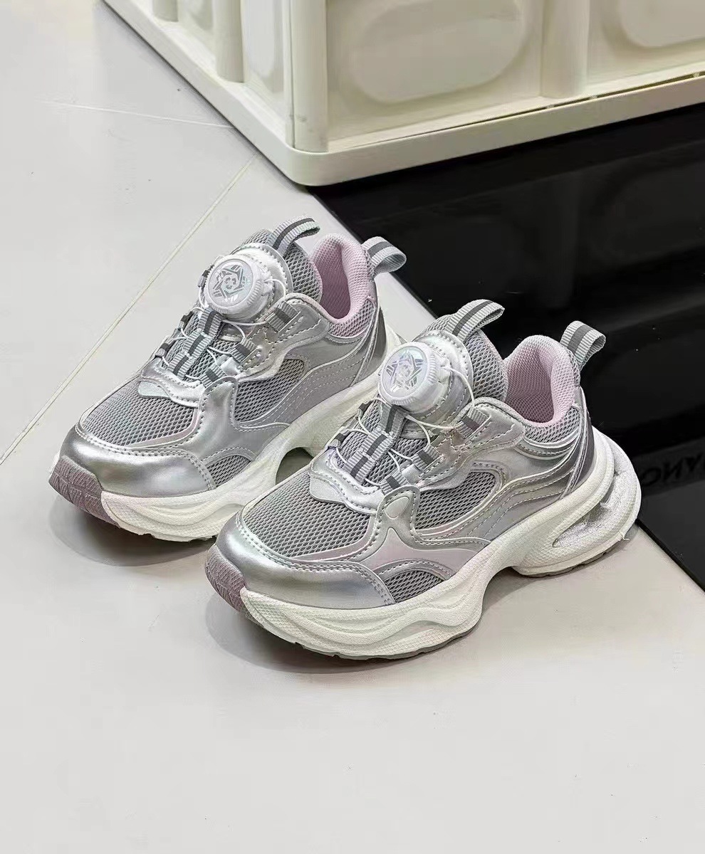 어린이 신발 2024 가을 새로운 남녀 메쉬 회전 버클 미끄럼 방지 라이트 운동화 캐주얼 아빠 신발 패션 신발