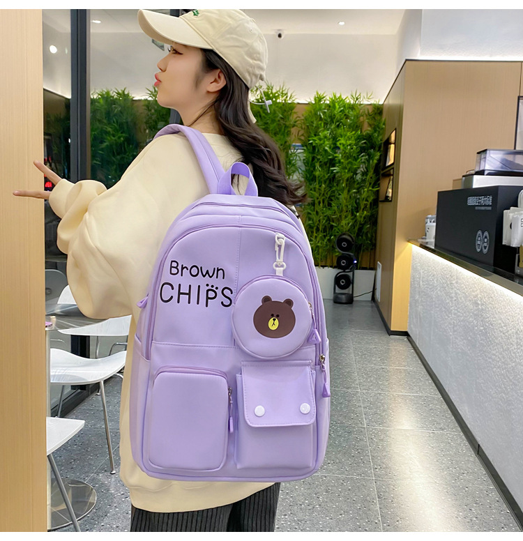 2024 새로운 학생 대용량 Schoolbag 귀여운 대학 스타일 신선한 간단한 Schoolbag 여행 캐주얼 배낭 여성