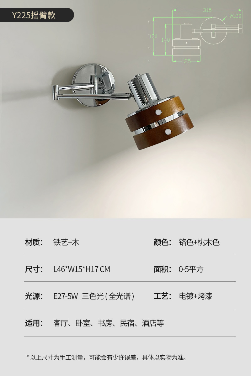 벽 램프 전체 스펙트럼 UFO 크림 스타일 현대 간단한 침실 침실 램프 회전 가능한 중동 고대 거실 로커 팔 램프