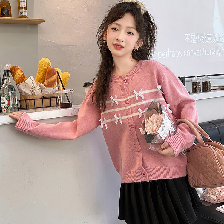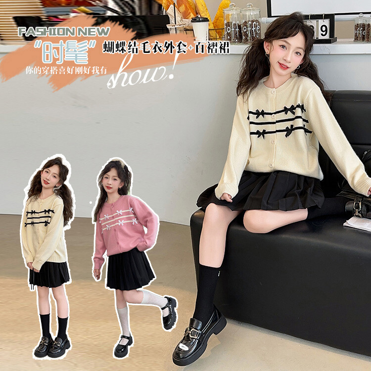 소녀 스웨터 카디건 가을과 겨울 2024 새로운 어린이 패셔너블 서양식 탑 소녀 아기의 가을 니트 자켓스토어 가기