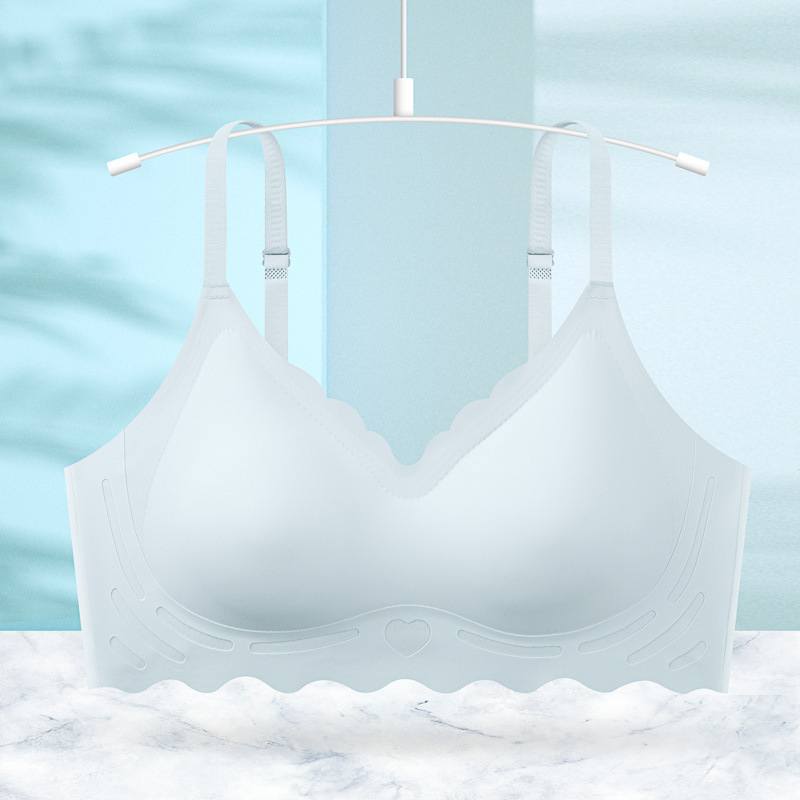 하트 투 하트 프린트 얇은 어깨 스트랩 Tracless Bra 작은 가슴 모임 편안한 스포츠 어퍼 브래킷 여름 얇은 속옷 유방 포장스토어 가기