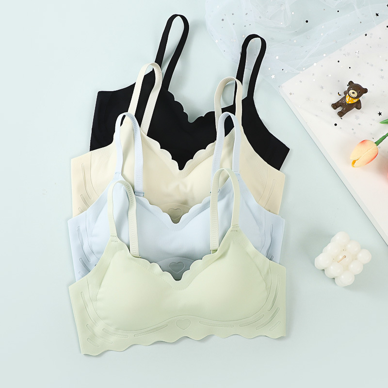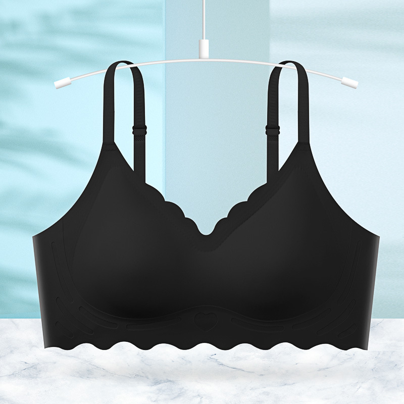 하트 투 하트 프린트 얇은 어깨 스트랩 Tracless Bra 작은 가슴 모임 편안한 스포츠 어퍼 브래킷 여름 얇은 속옷 유방 포장