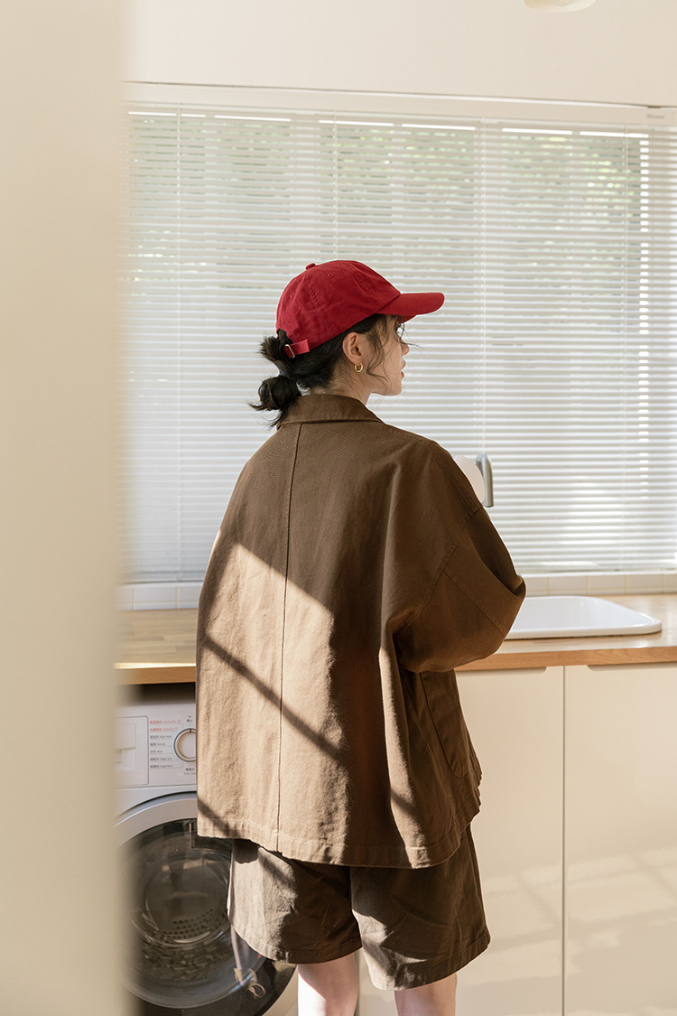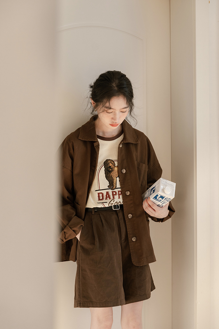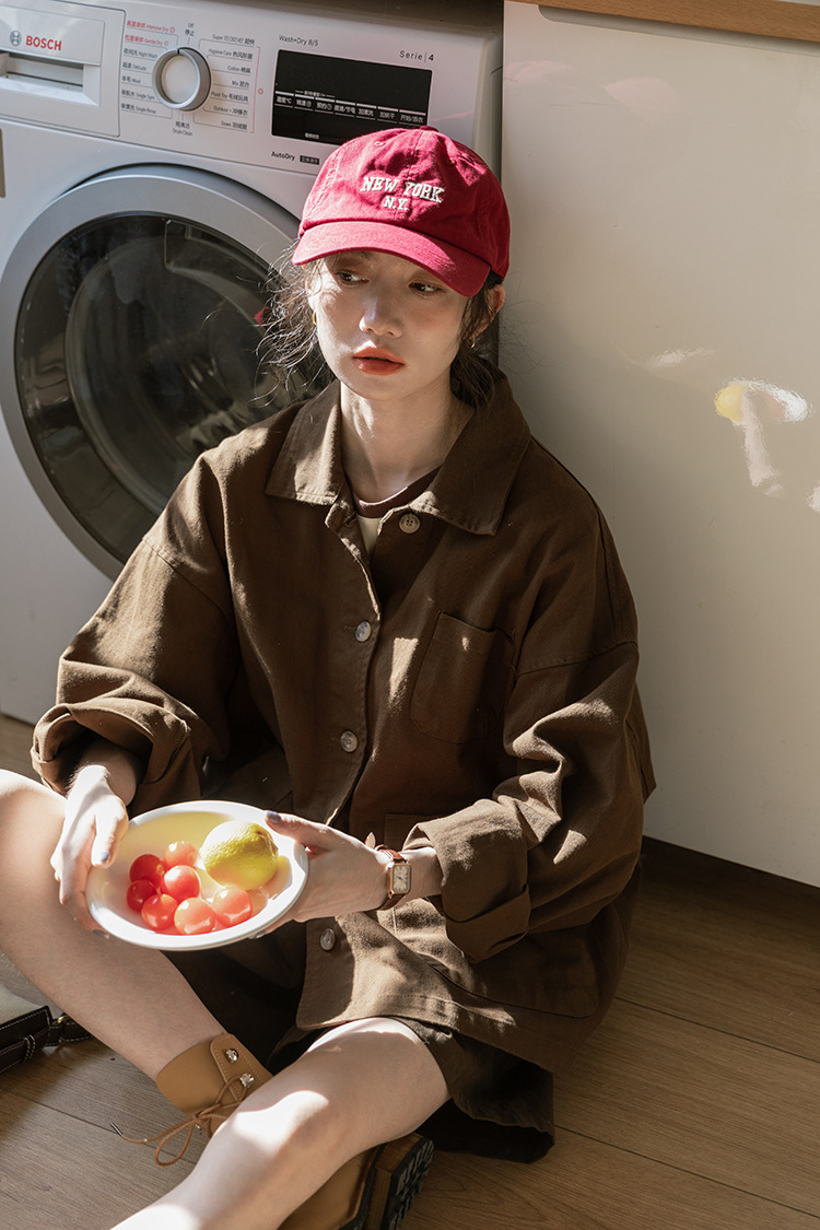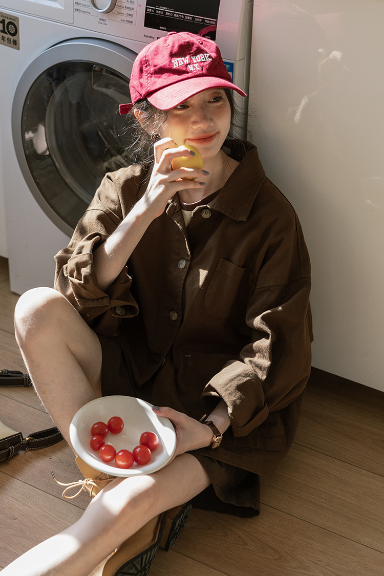 가을 2024 새로운 스타일 일본 스타일 캐주얼 인 루즈 레트로 한국 스타일 세척 코튼 커피 스타일 작업복 코트 여성 유행스토어 가기