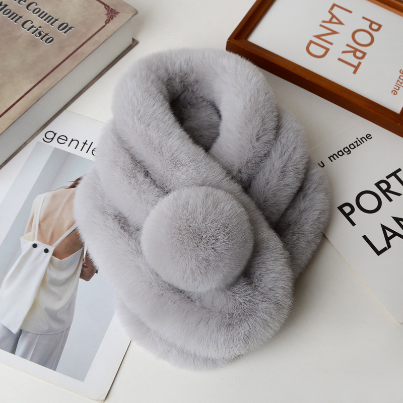 새로운 한국식 모조 렉스 토끼 모피 스카프 남성과 여성을위한 트리플 튜브 봉제 스카프 따뜻한 목 세트 겨울 두꺼운 스카프