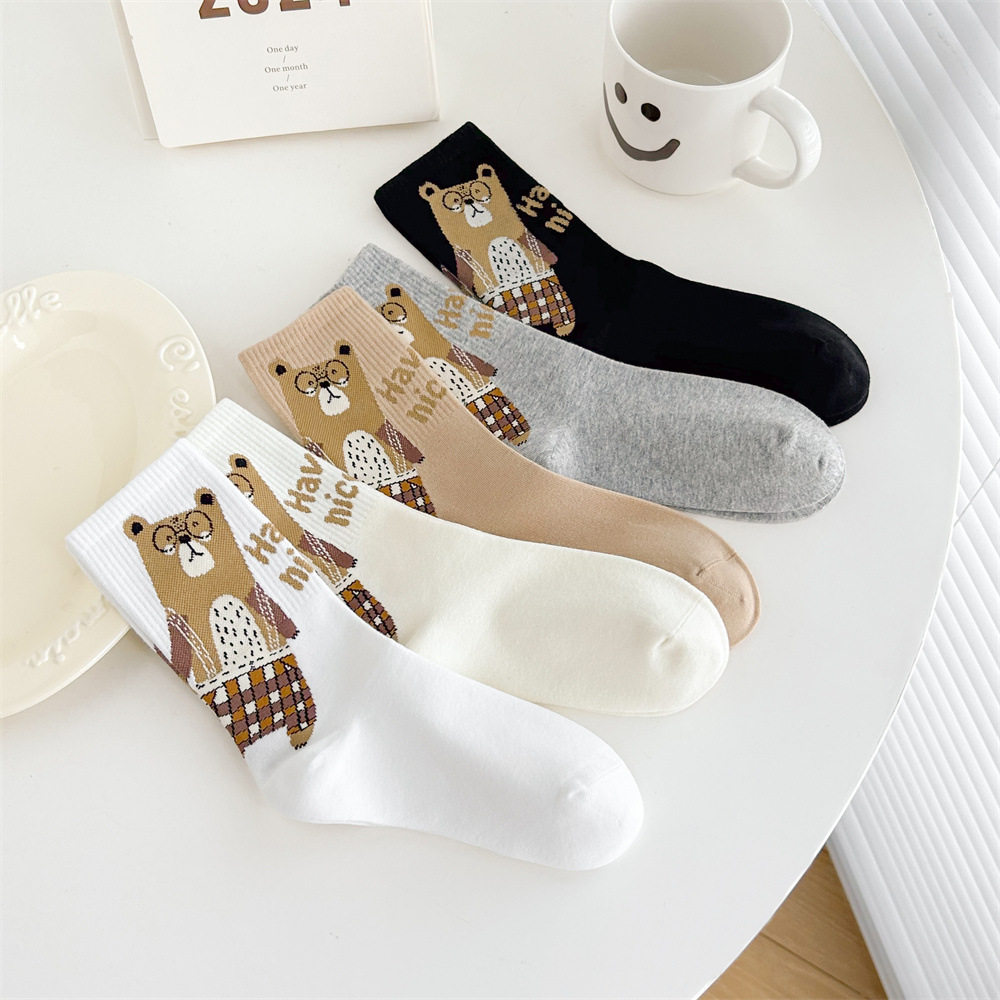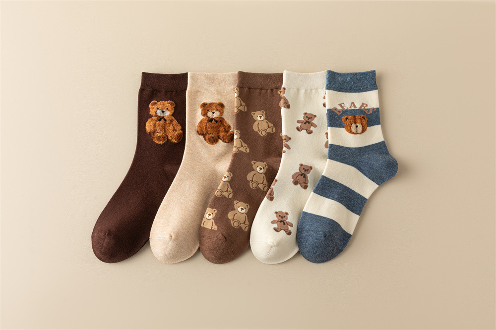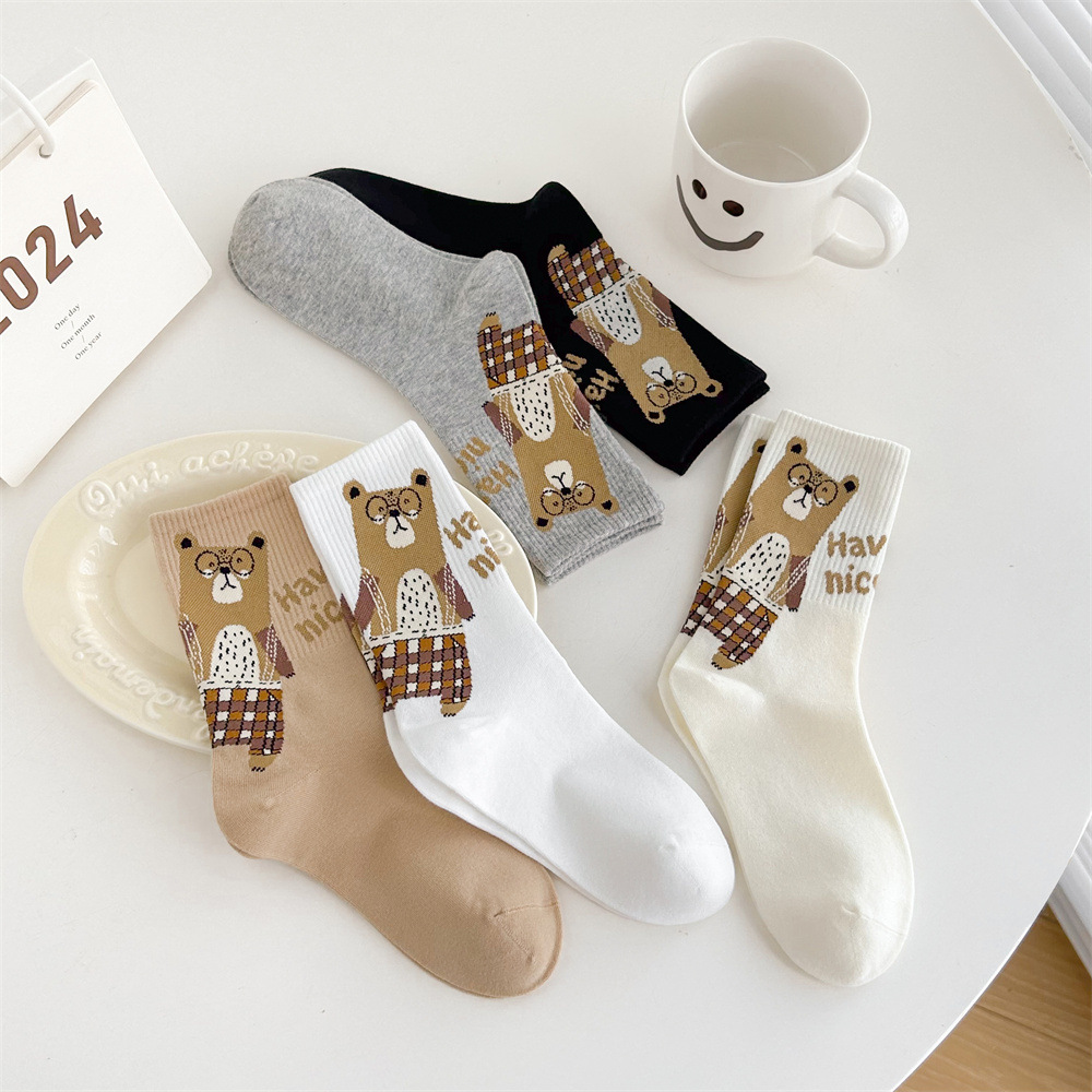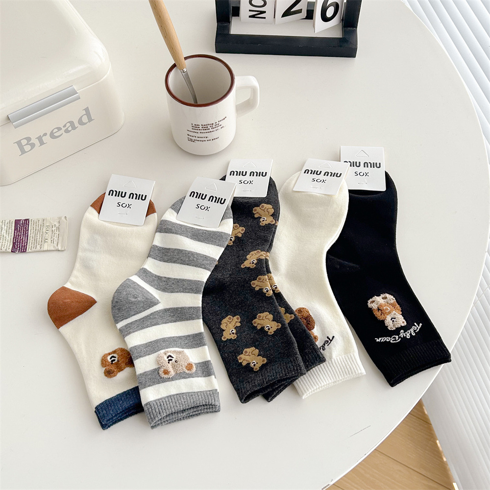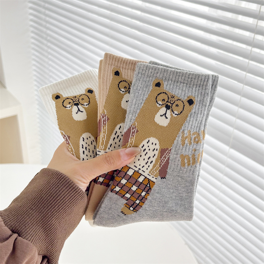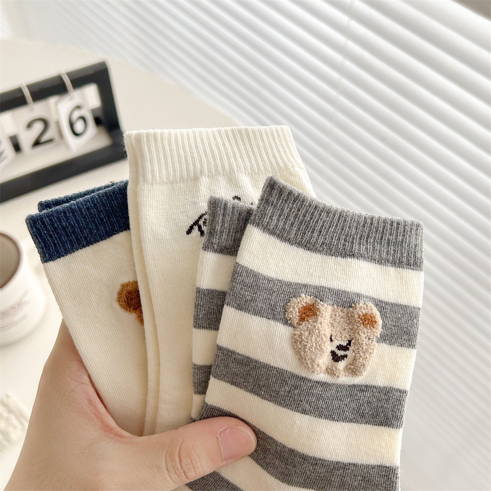 손으로 꿰매어 빗질 면화 한국 동대문 여성 양말 줄무늬 3 차원 몰려 만화 곰 편지 허리 튜브스토어 가기