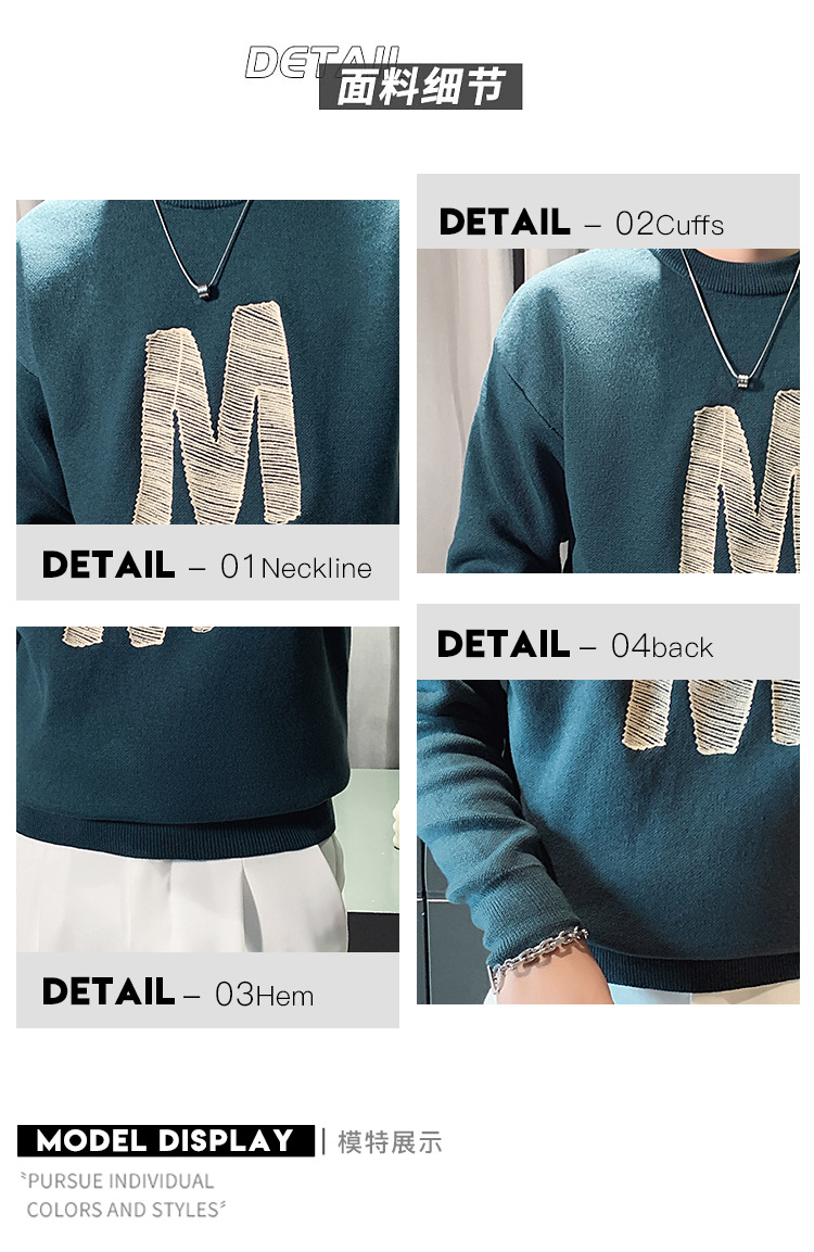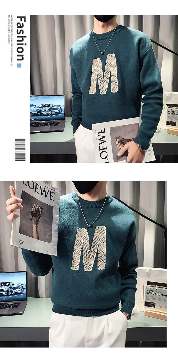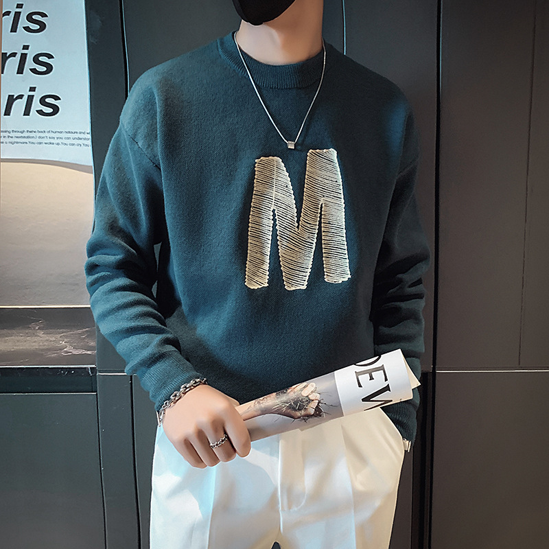 라운드 넥 니트 셔츠 남성 내부 레트로 미국 톱베이스 셔츠 겨울 편지 패션 브랜드 게으른 패션 니트 셔츠