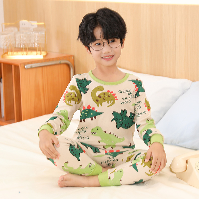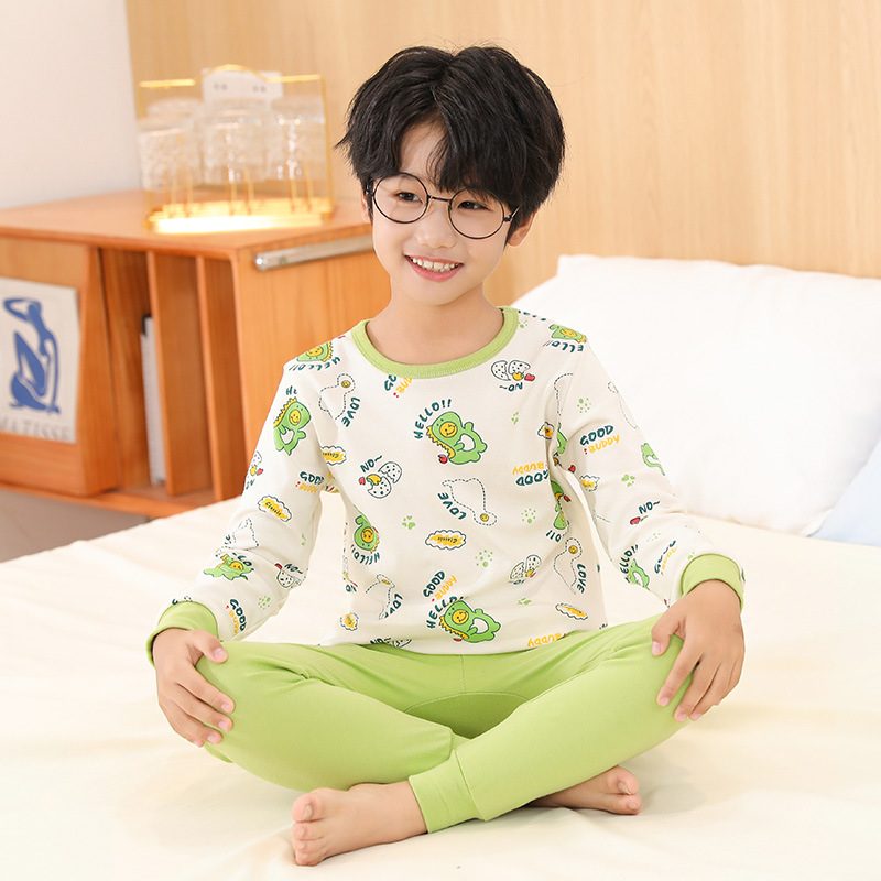 • BE 면 가을 옷 세트 녹색 공룡 알