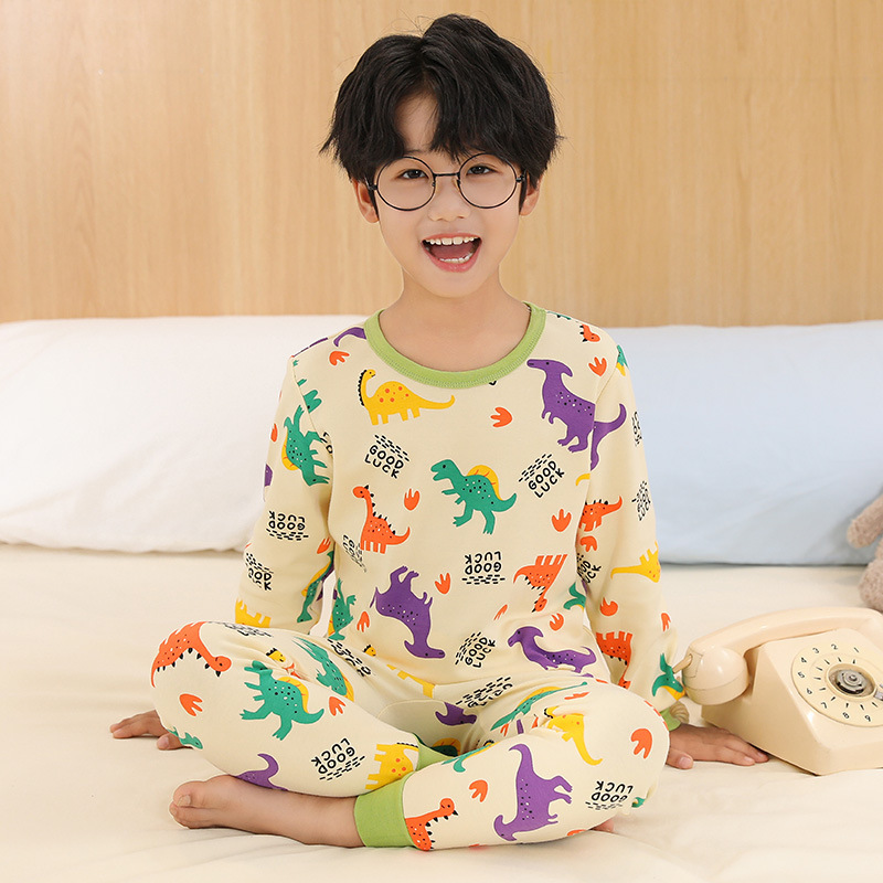 • BE 면 가을 옷 세트 노란색 영어 공룡