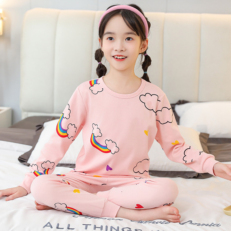 • BE 면 가을 옷 세트 핑크 무지개 구름