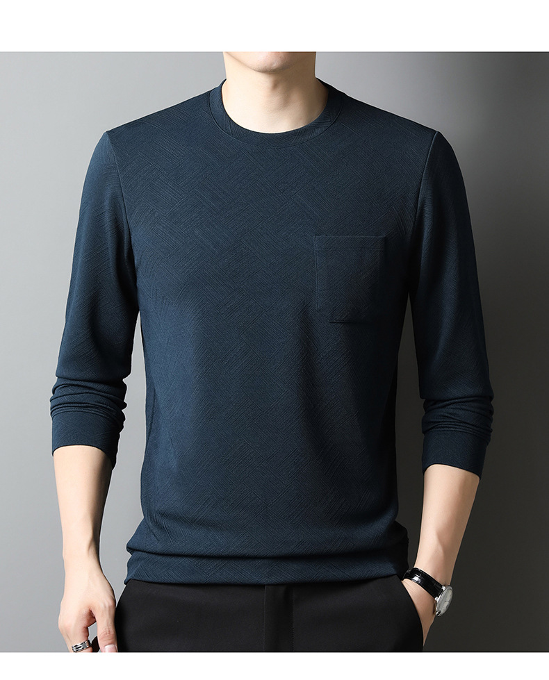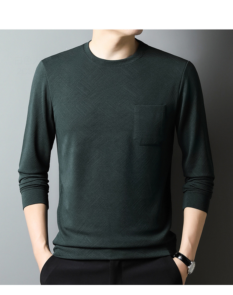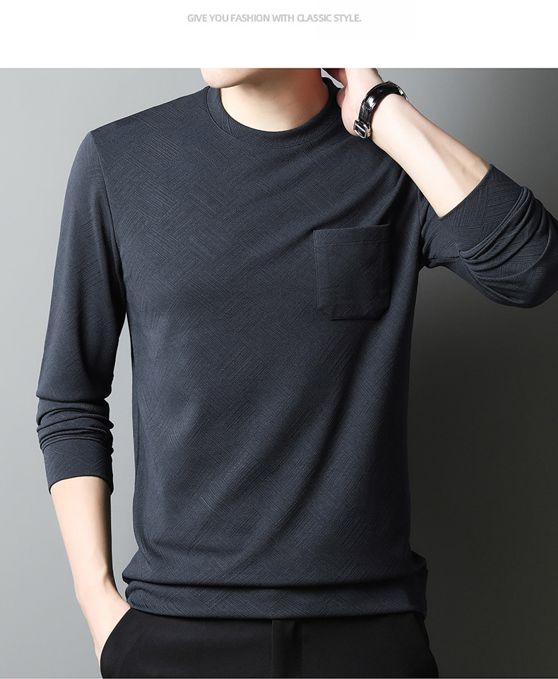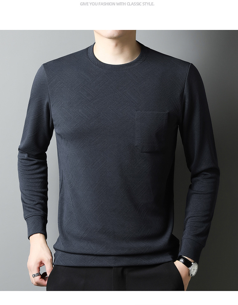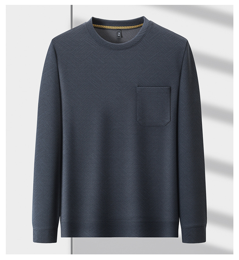 중년 및 노인 아빠 크루 넥 긴팔 티셔츠 남성 봄과 가을 캐주얼 패션 자카드 리얼 포켓 탑 티셔츠 탑스토어 가기