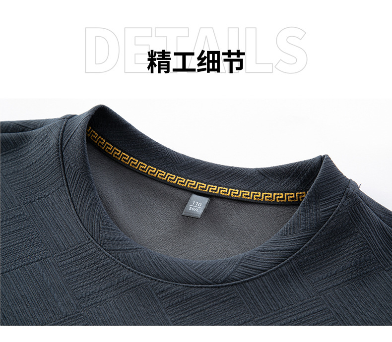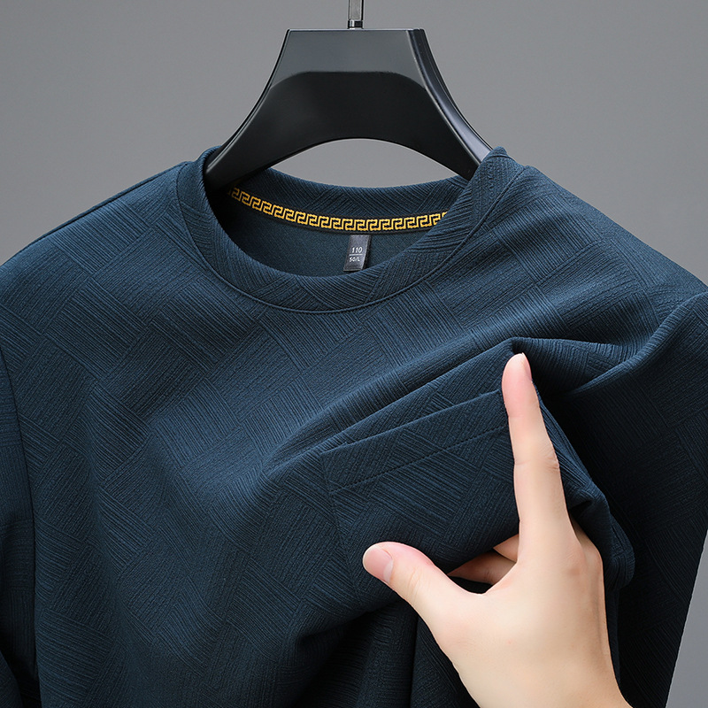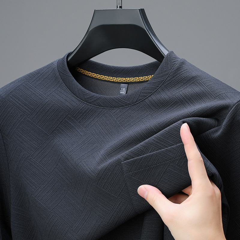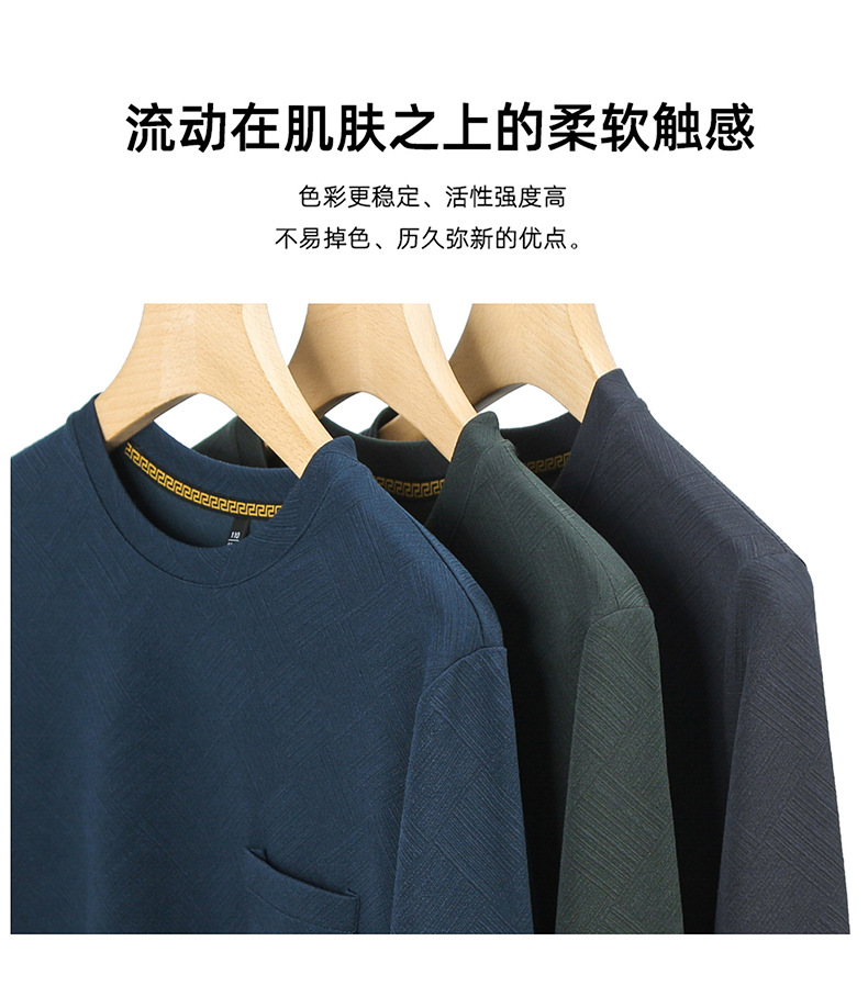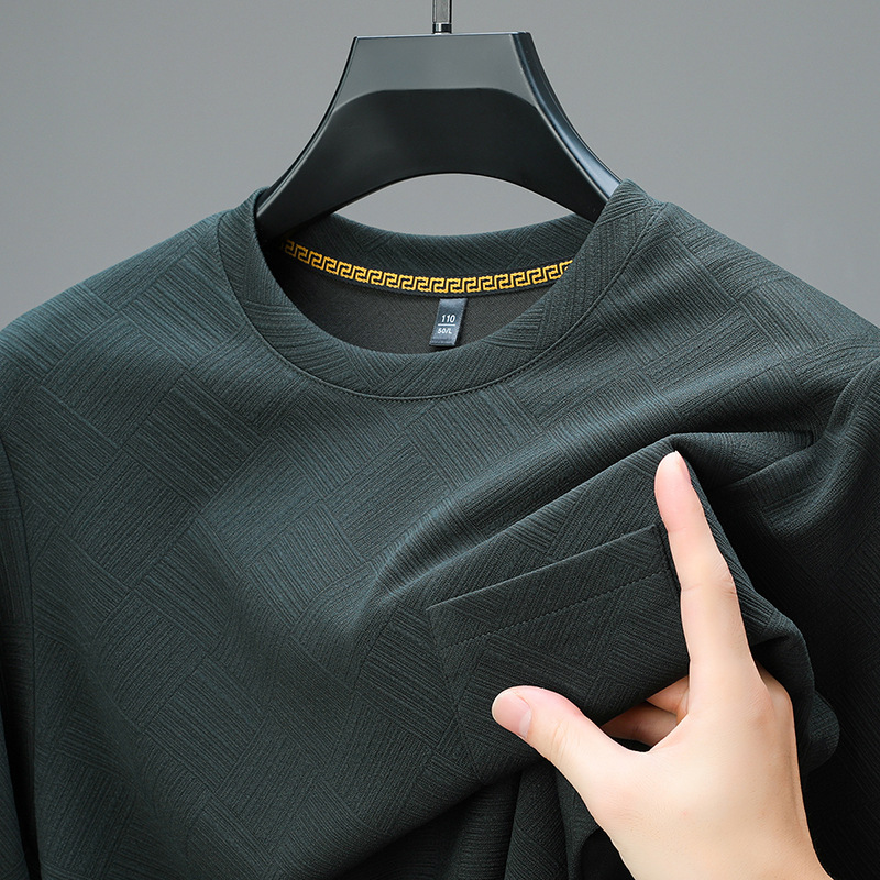 중년 및 노인 아빠 크루 넥 긴팔 티셔츠 남성 봄과 가을 캐주얼 패션 자카드 리얼 포켓 탑 티셔츠 탑스토어 가기