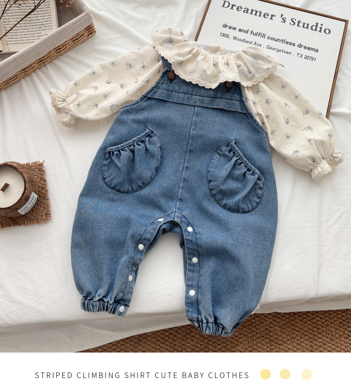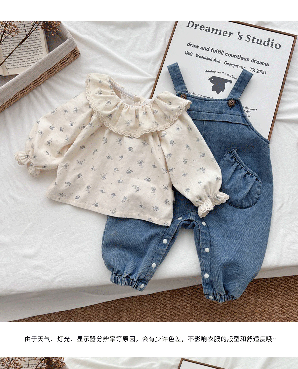 소녀 가을 세트 새 아기 티셔츠 데님 바운티 바지 투피스 세트 서양식 베이비 부머 쿨웨어
